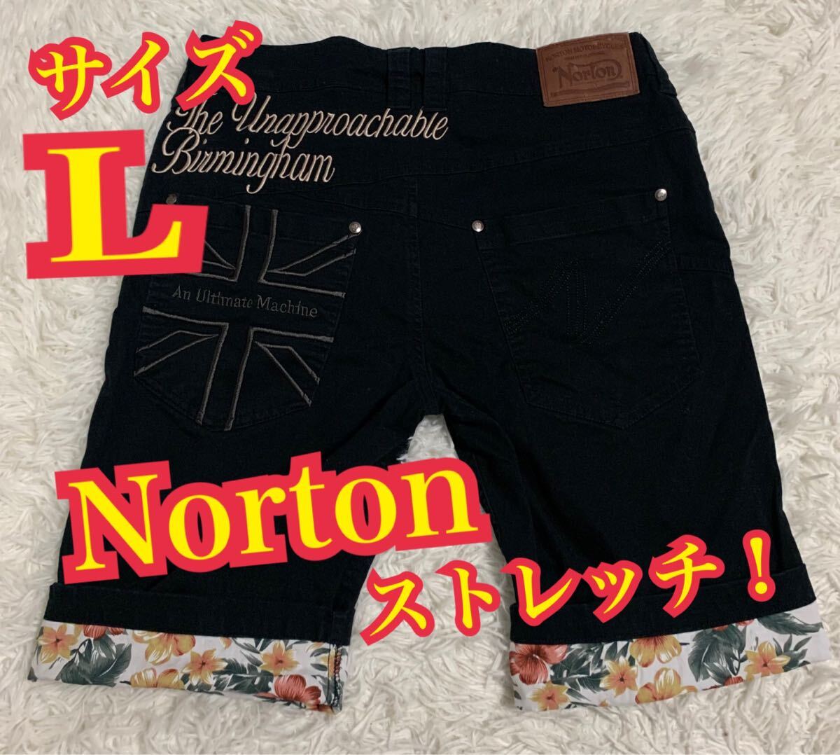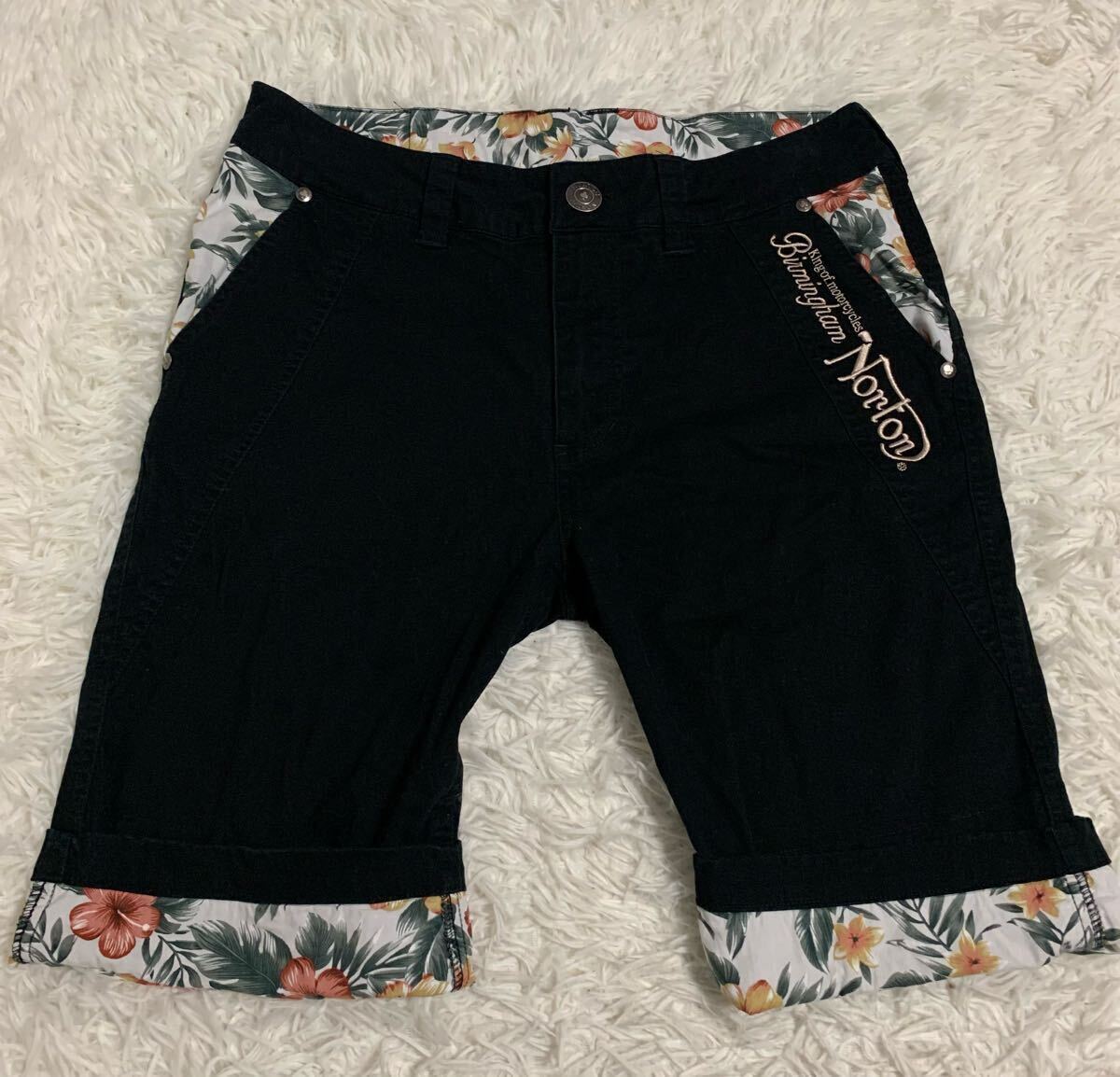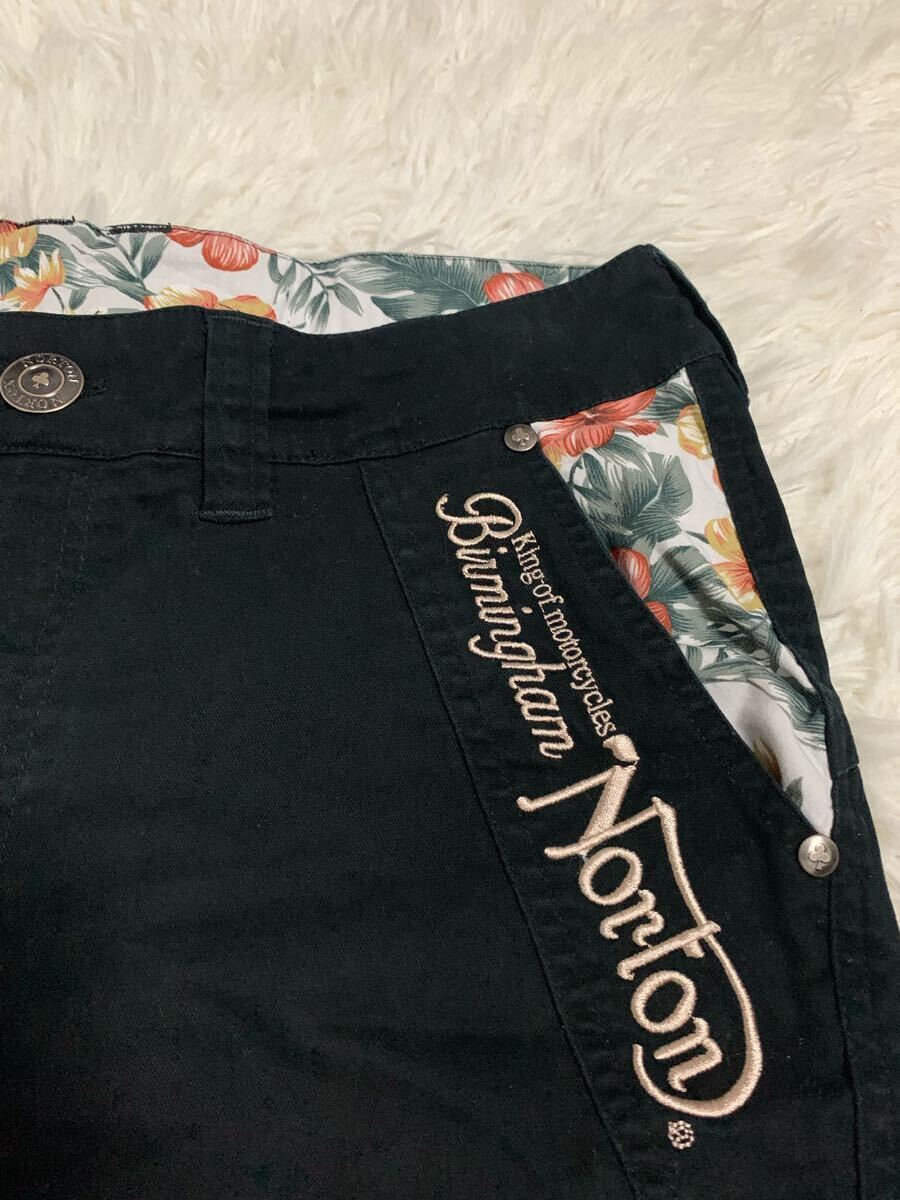 Norton ノートン ハーフパンツ ストレッチ バイカー 刺繍ロゴ 黒 Lサイズ