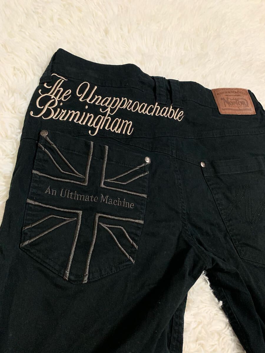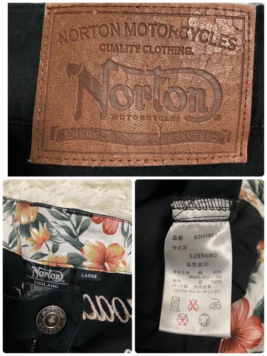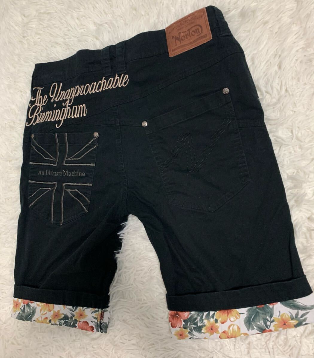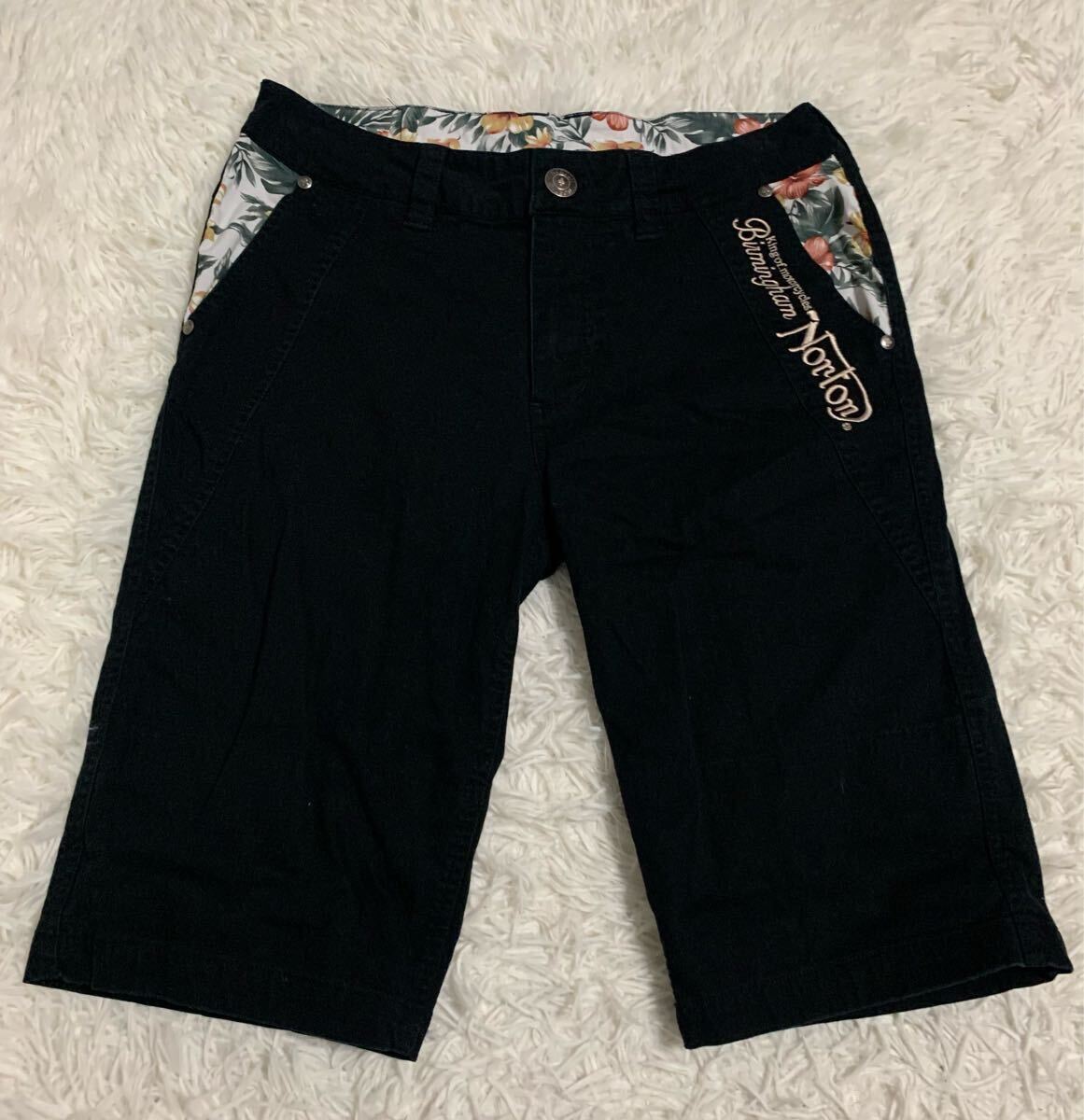Norton ノートン ハーフパンツ ストレッチ バイカー 刺繍ロゴ 黒 Lサイズ