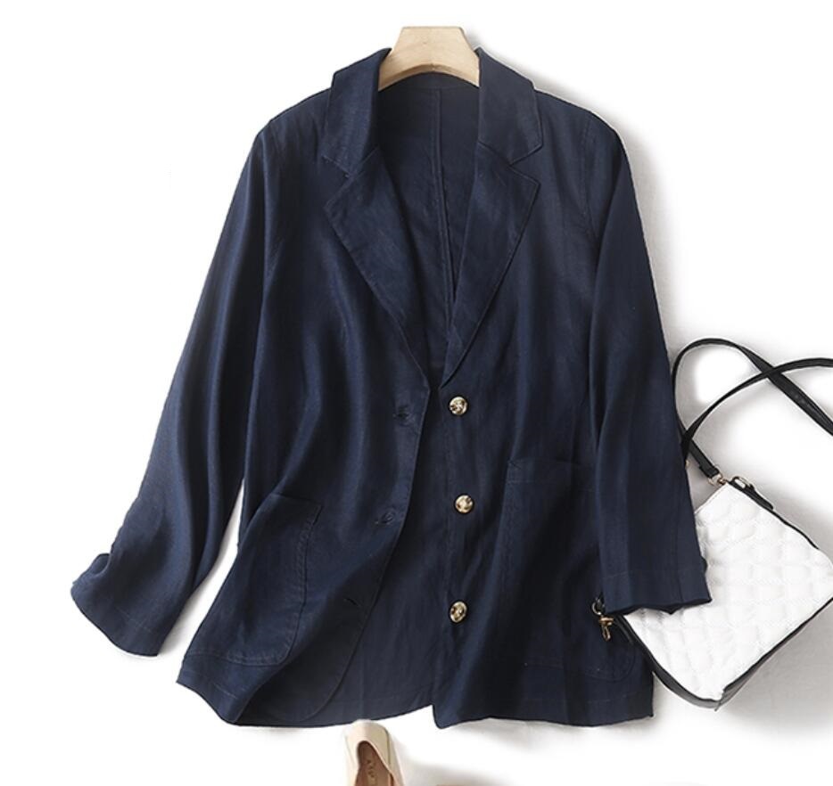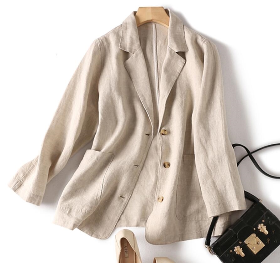 新入荷~リネンアウター リネンジャケット レディース テーラードジャケット オフィス カジュアル 薄手 綿麻風 プリングコート~麻色
