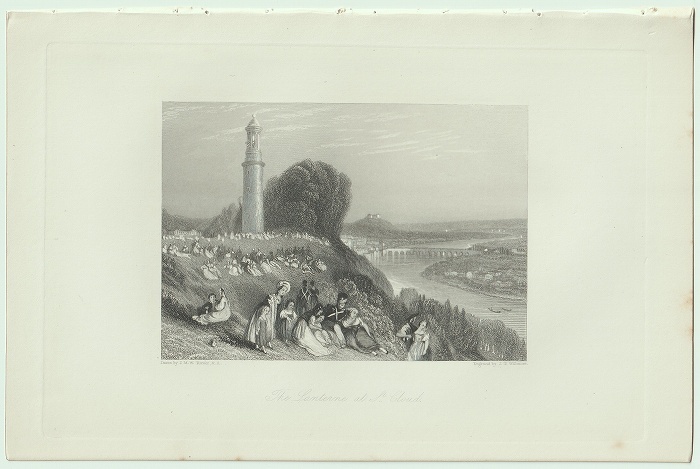 1853年 ターナー 鋼版画 The Rivers of France パリ西郊 サン・クルー ランタン・ド・デモステーヌ塔 The Lanterne at St.Cloud