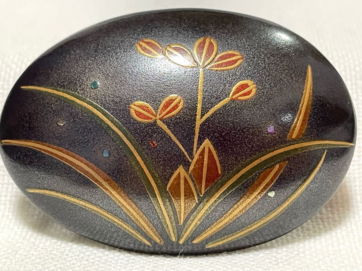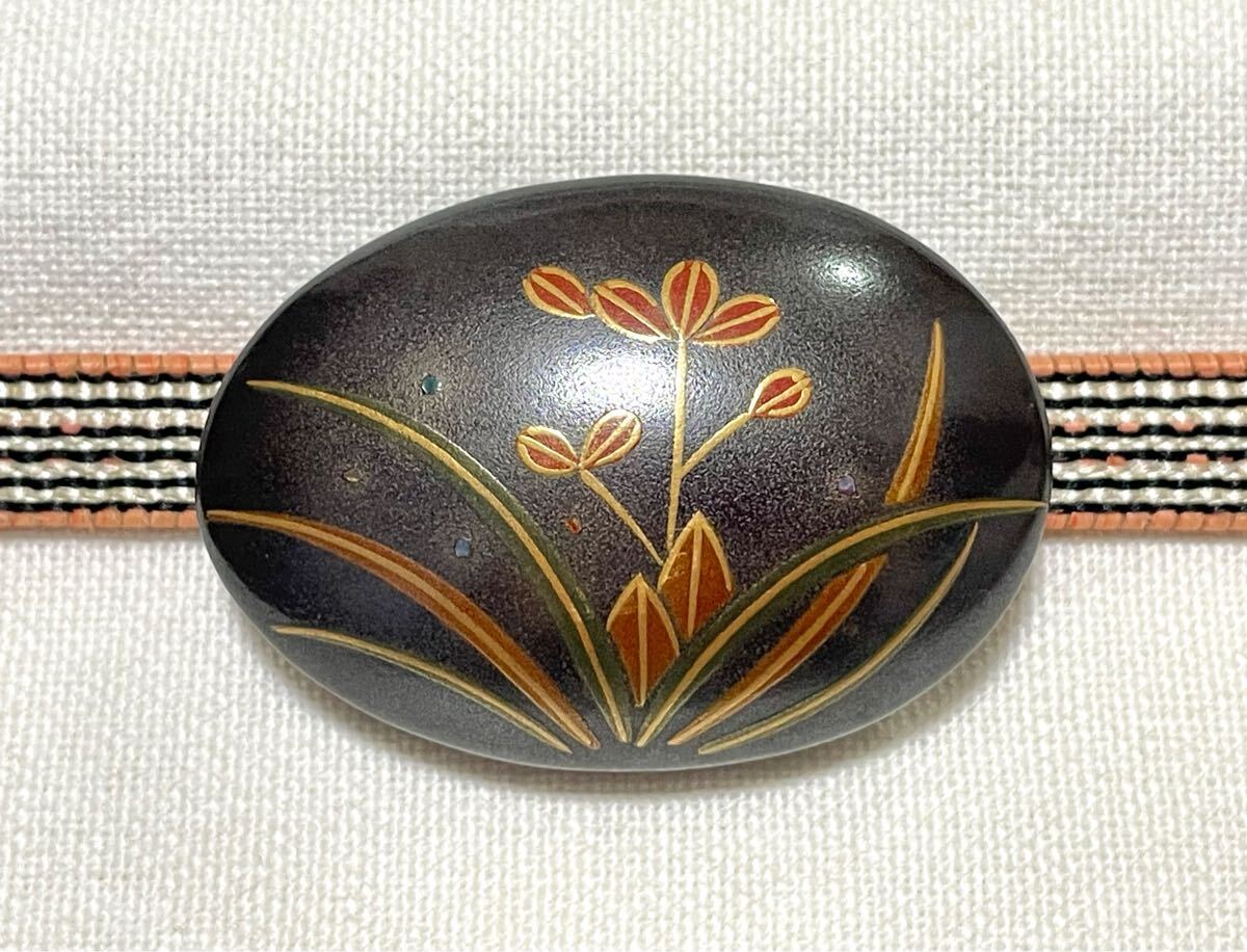 輪島塗りのアクセサリーを帯留めにリメイクしました。