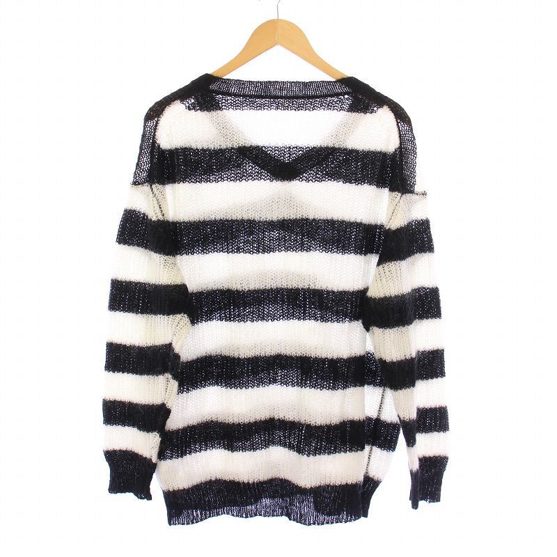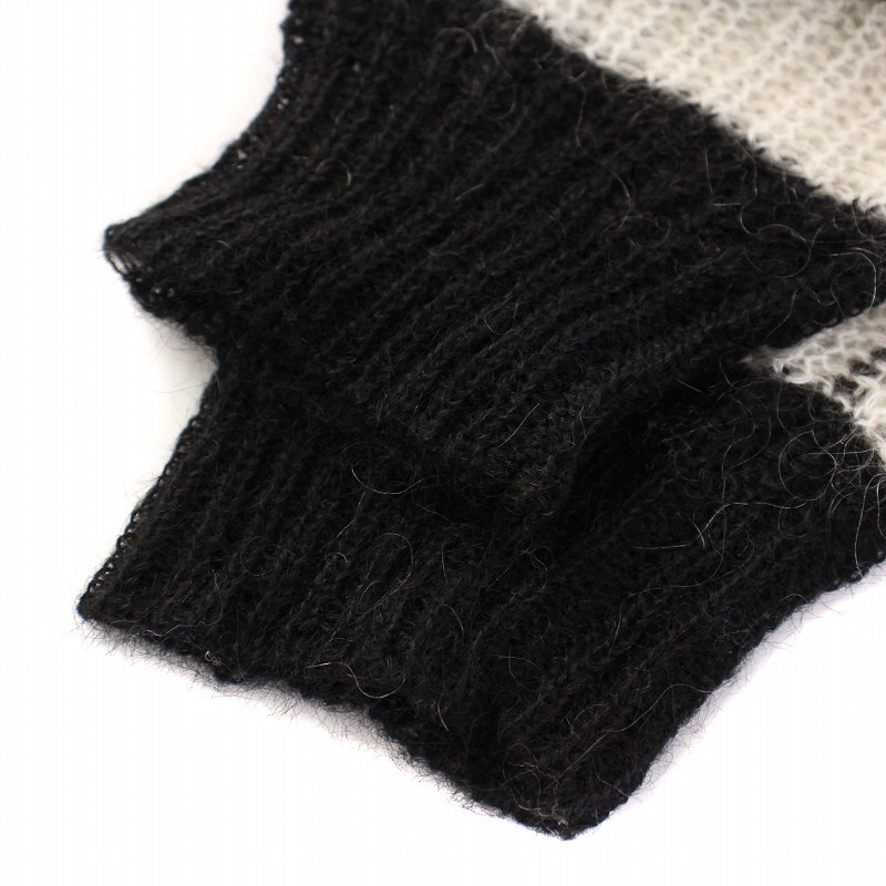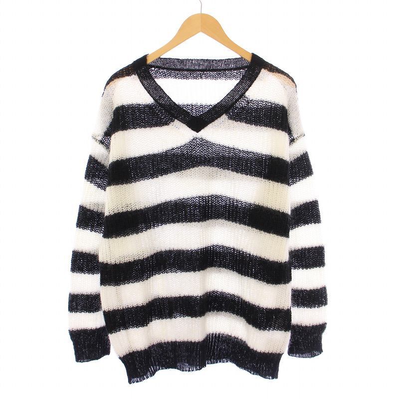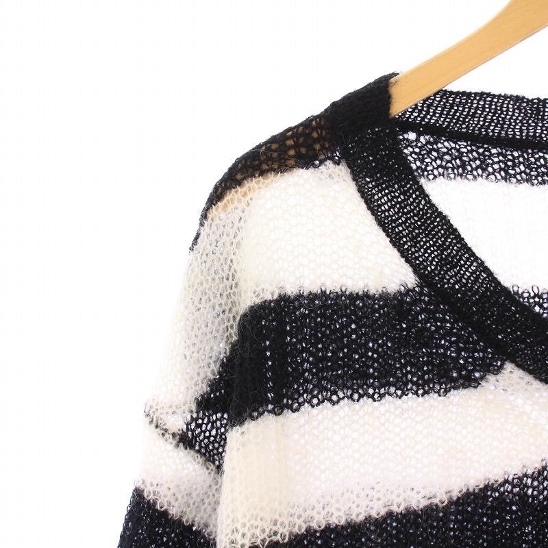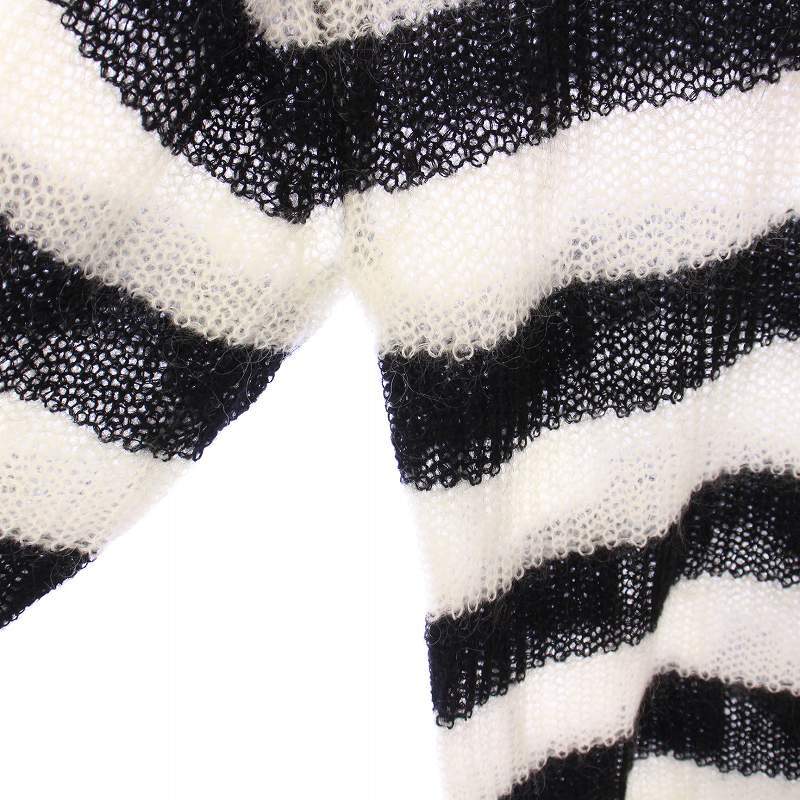 グレースクラス GRACE Class モヘヤボーダーニットトップ 長袖 Vネック 編み込み ウール混 36 黒 ブラック 白 ホワイト 0222343215