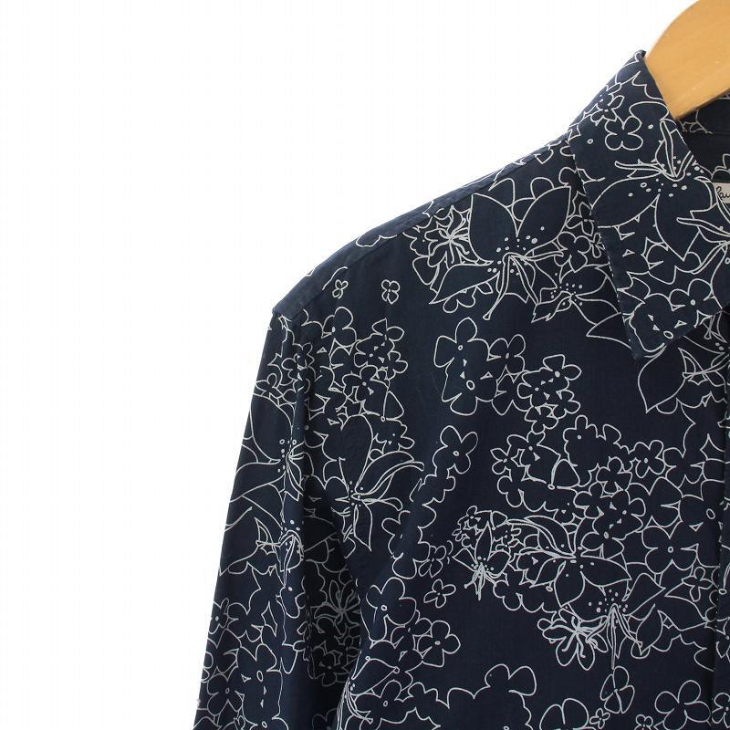 ポールスミスジーンズ Paul Smith JEANS カジュアルシャツ 長袖 レギュラーカラー 花柄 総柄 S 紺 ネイビー /BB ■GY14 メンズ