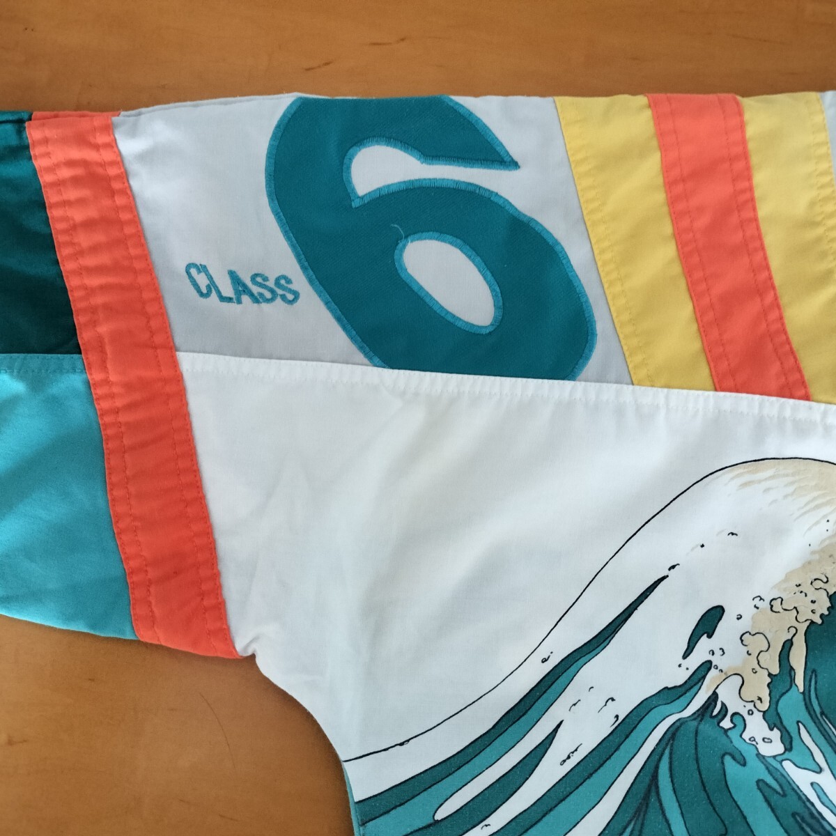 サイズ表記はMで、大きさは素人採寸で着丈69㎝×身幅61㎝×裄丈82㎝です。