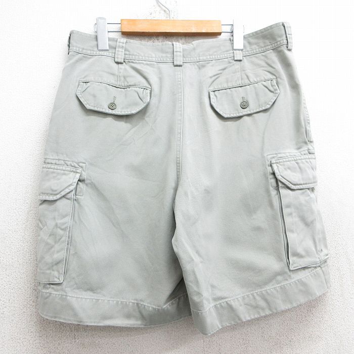 【商品名】 W35★古着 ランズエンド ショート カーゴ パンツ ショーツ メンズ コットン 薄グレー