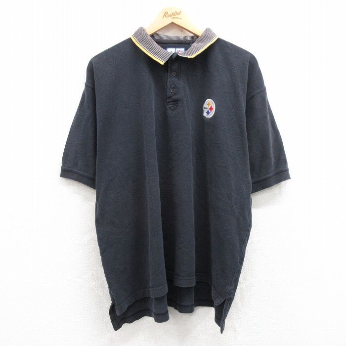 【商品名】 XL★古着 半袖 ポロ シャツ メンズ 00年代 00s NFL ピッツバーグスティーラーズ 鹿の子 大きいサイズ 黒 アメフト スーパーボウル