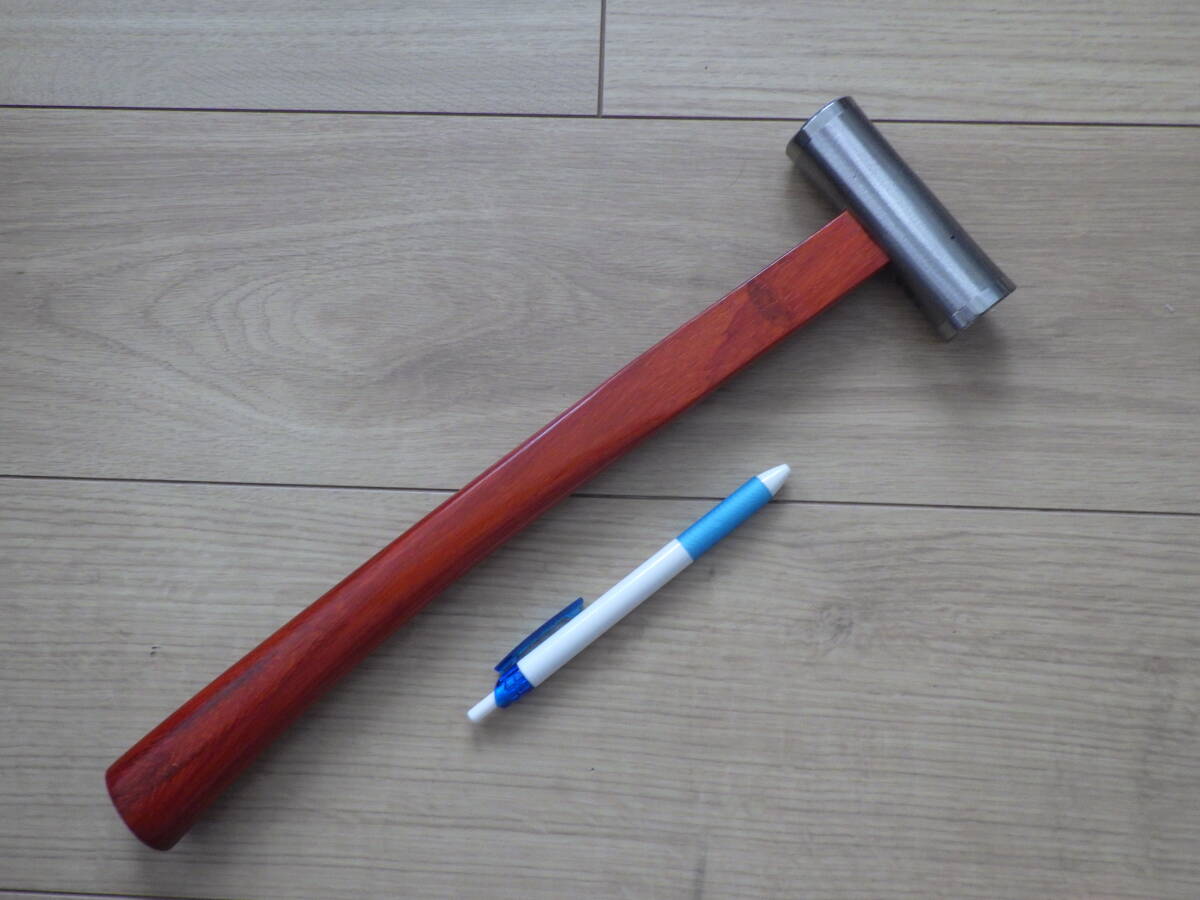 頭部重量は120匁(450g)、サイズは全長約36㎝、頭部幅9.5㎝、打撃面縦3.1㎝横2.8㎝の楕円形です。頭部には製造時からの傷やへこみ等あります。