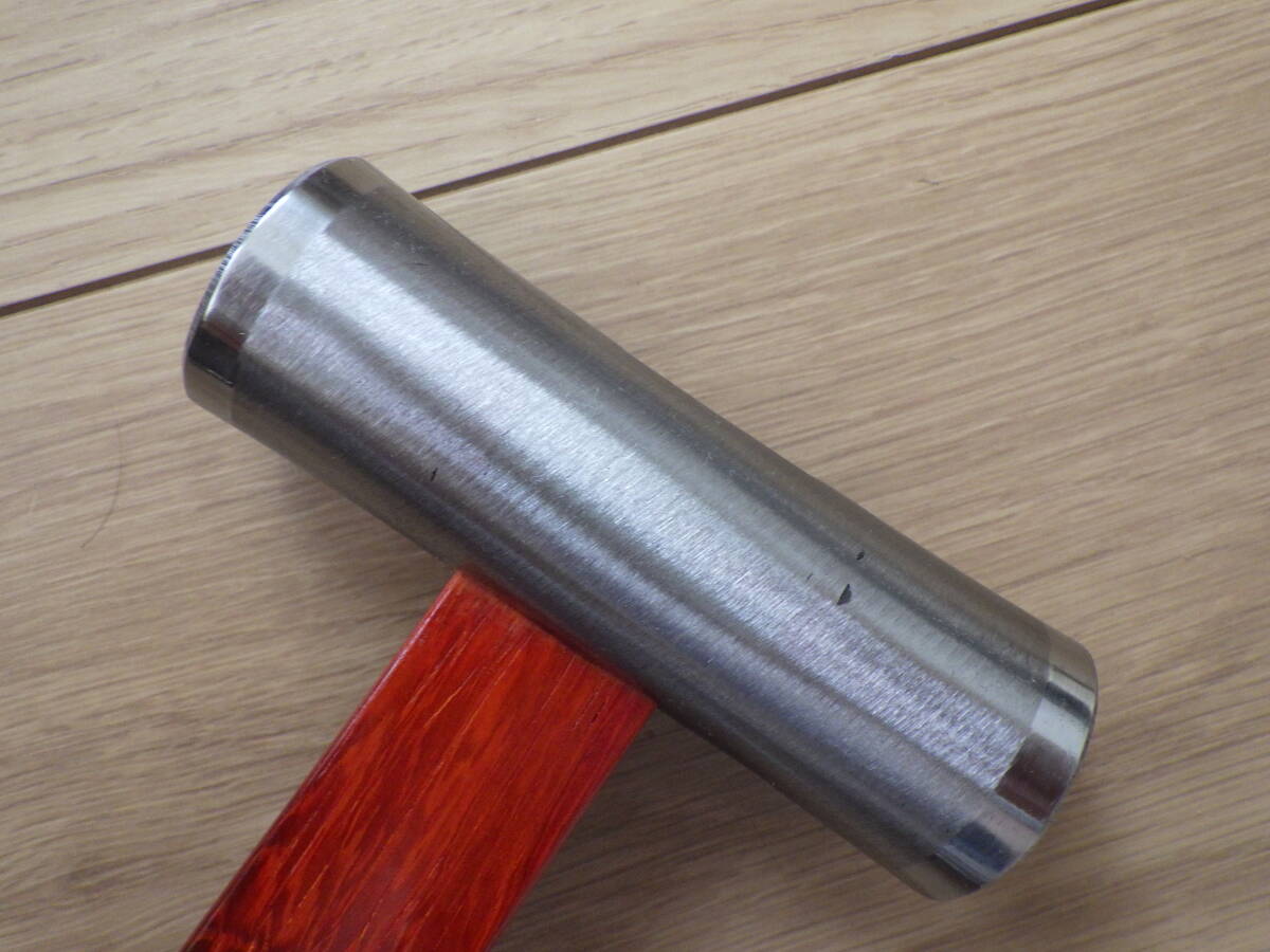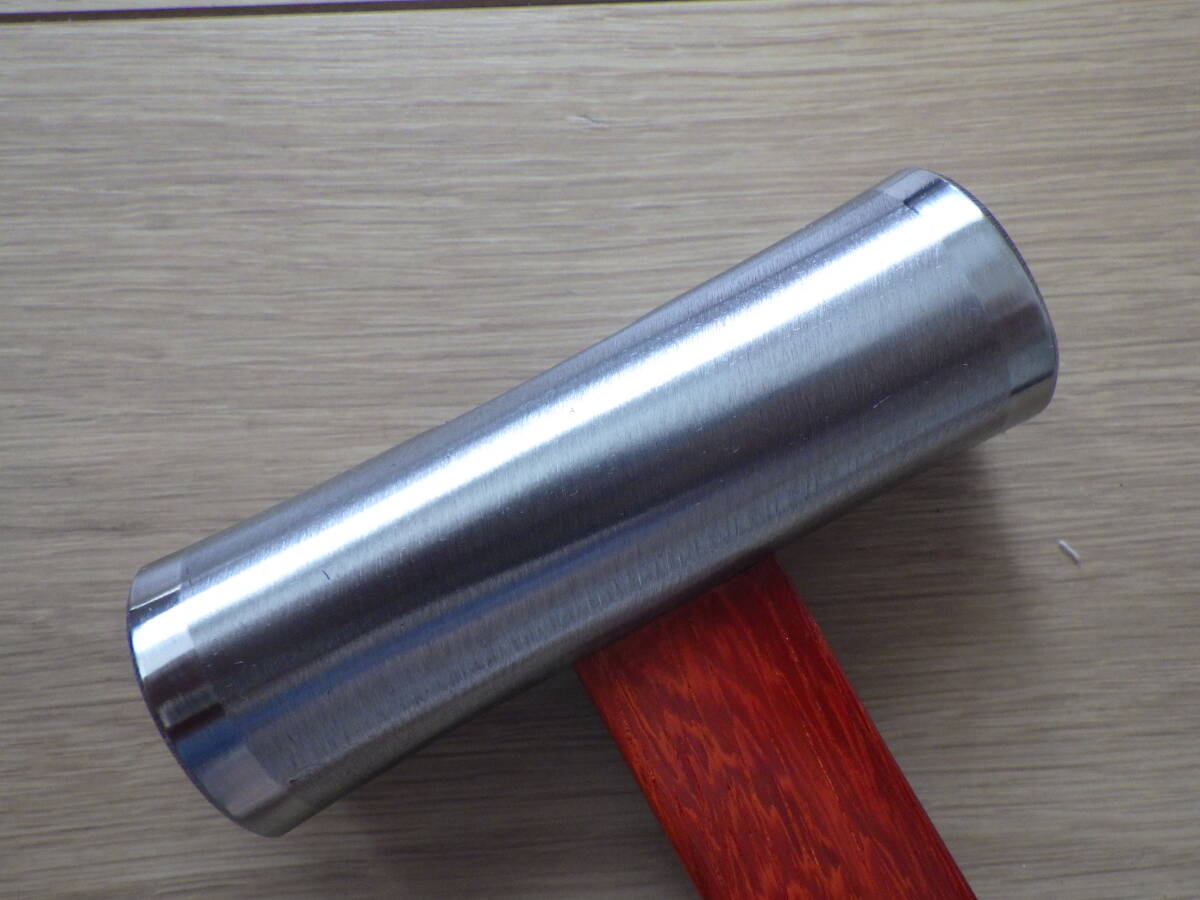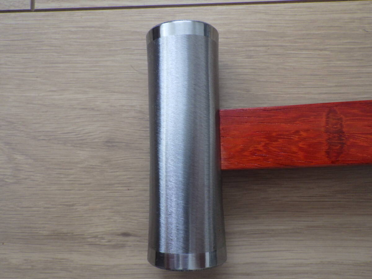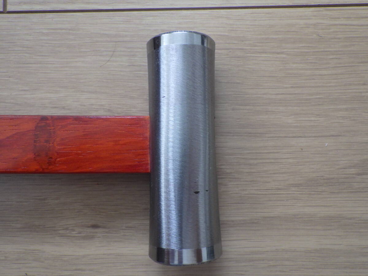 未使用長期保管品の丸型玄能(「丸増」銘)にヤスリ仕上げを施し、新たに紫檀柄を挿げたものです。