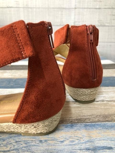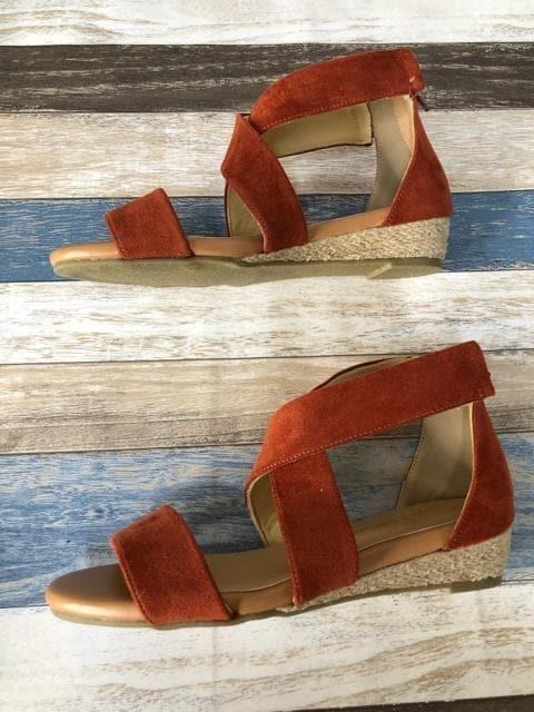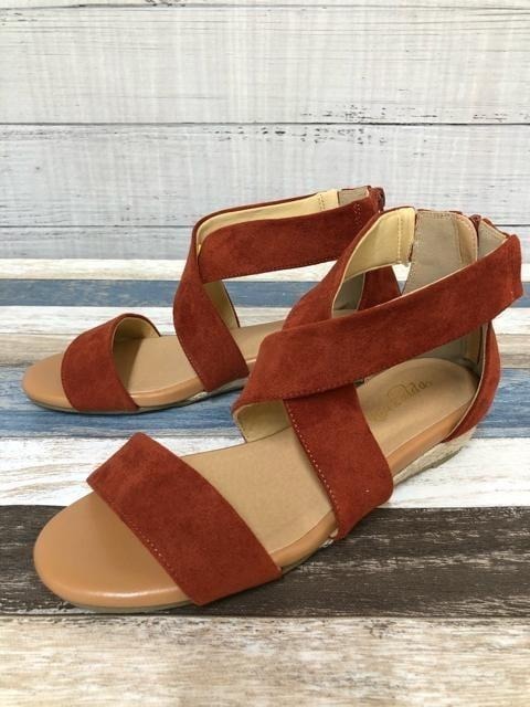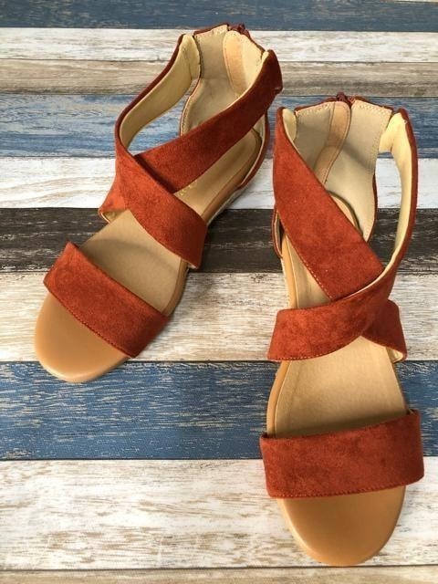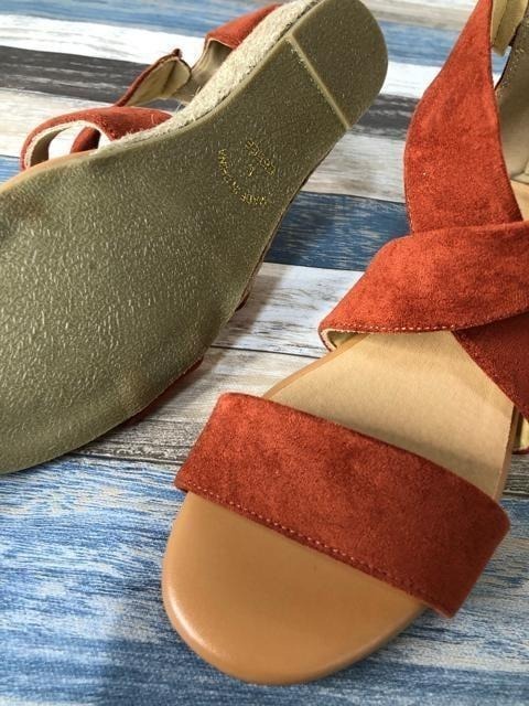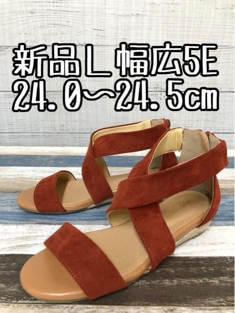 新品☆L24~24.5幅広5Eテラコッタ系スウェード調おしゃれサンダル☆g106