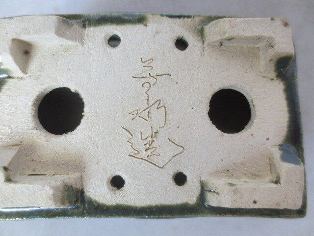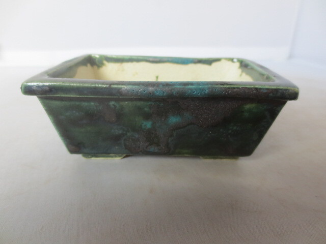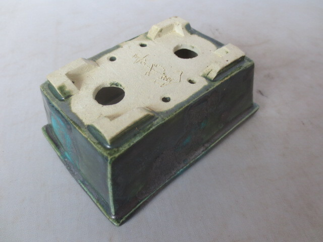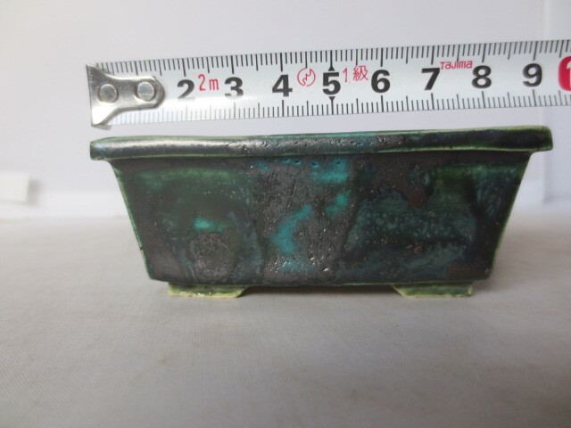 【艸】 R7/07/10-6 越前芳水 緑釉長方 盆栽鉢 小鉢 小花盆 幅9センチ  10jul6