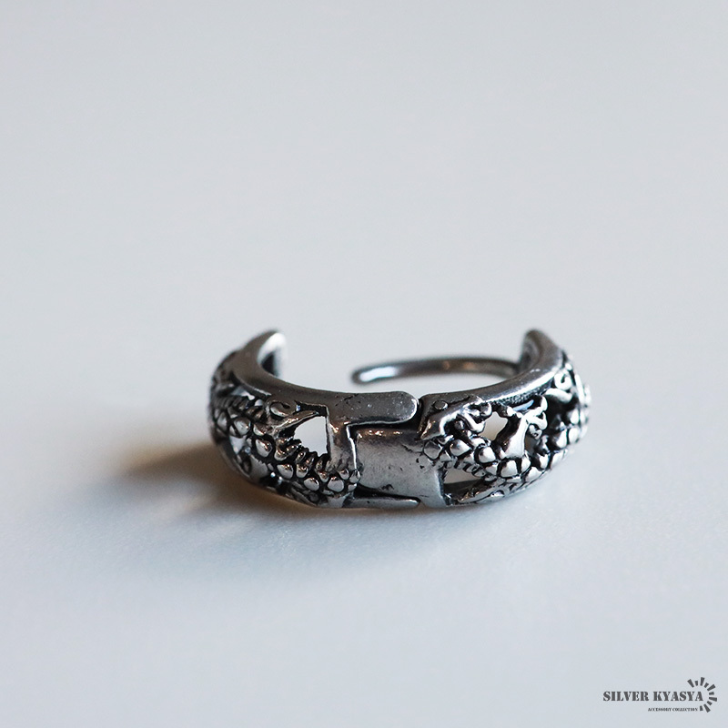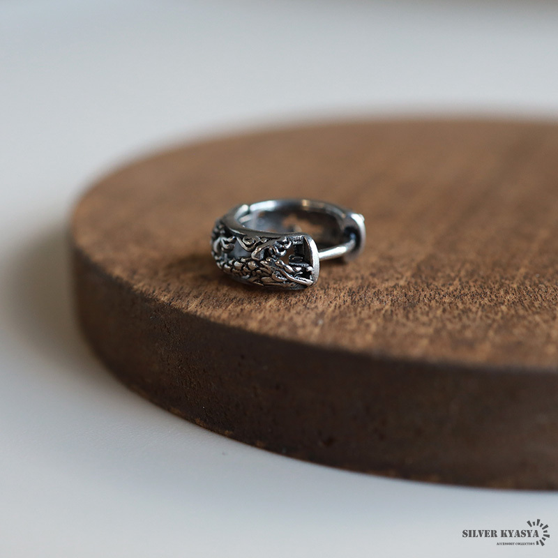ドラゴンを模した個性的なデザインのフープピアス。ドラゴンの力強い姿を芸術的な透かし彫りで表現したこだわりのアイテム。
