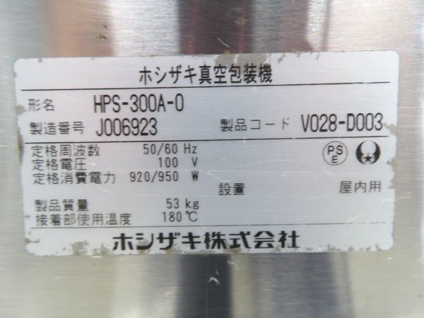 ◆ホシザキ 2019年◆真空包装機 HPS-300A-0 100V 420×565×375 サイズ:W420×D565×H375mm 電 源:100V チャンバー内寸法:幅380×奥行435×高さ100mm チャンバー内容積:13L シール長さ:310mm 最大袋寸法:幅300×長さ450mm 製品質量:53kg 出品にあたり動作確認・クリーニング済みです。 画像をよくご確認の上、ご理解頂ける方のご入札をお願いいたします。 神経質な方はご入札をご遠慮ください。 気持ちの良いお取り引きにしたいと思いますので、ご不明な点等ございましたらお気軽にご質問ください。 | |