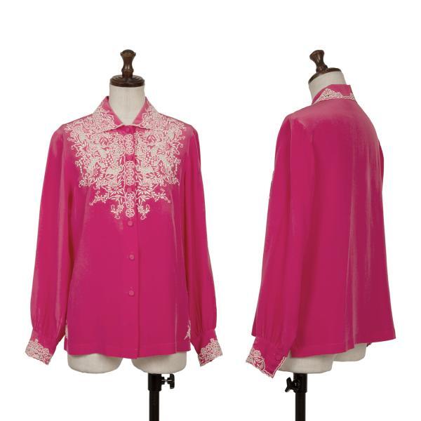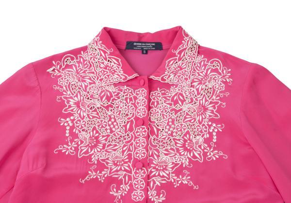 | コムデギャルソンCOMME des GARCONS シルク刺繍デザインシャツ ピンクS |
