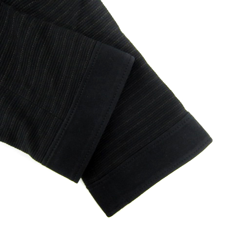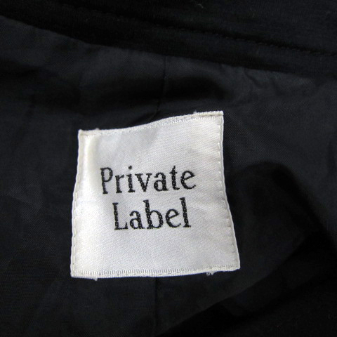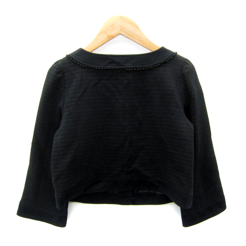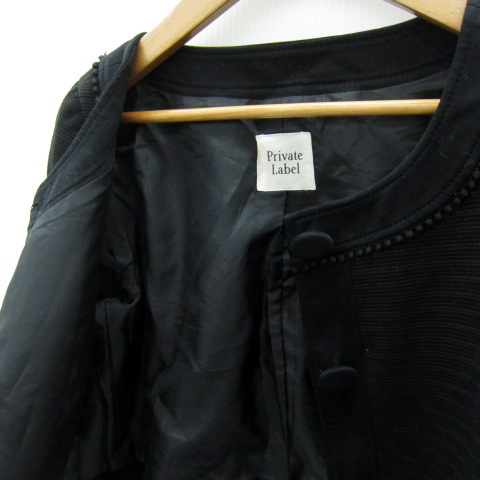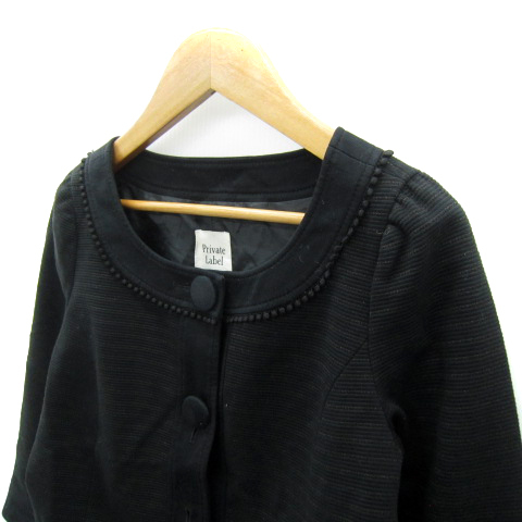 プライベートレーベル Private label ノーカラージャケット ショート丈 ボーダー柄 七分袖 S 黒 ブラック 茶 ブラウン レディース