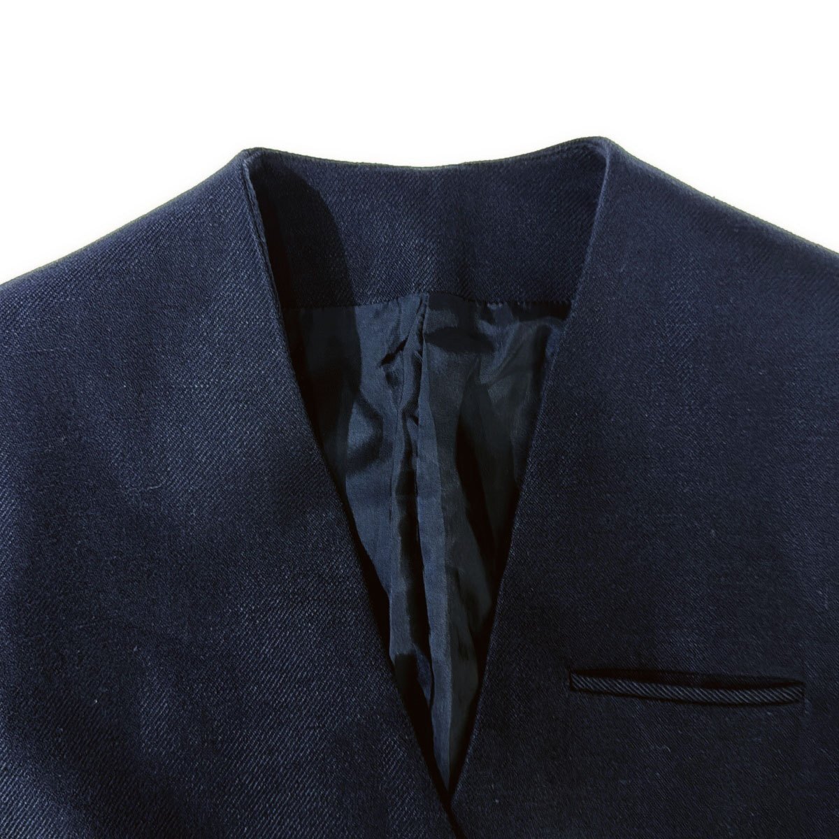 綿麻ツイルノーカラージャケット 085-42071