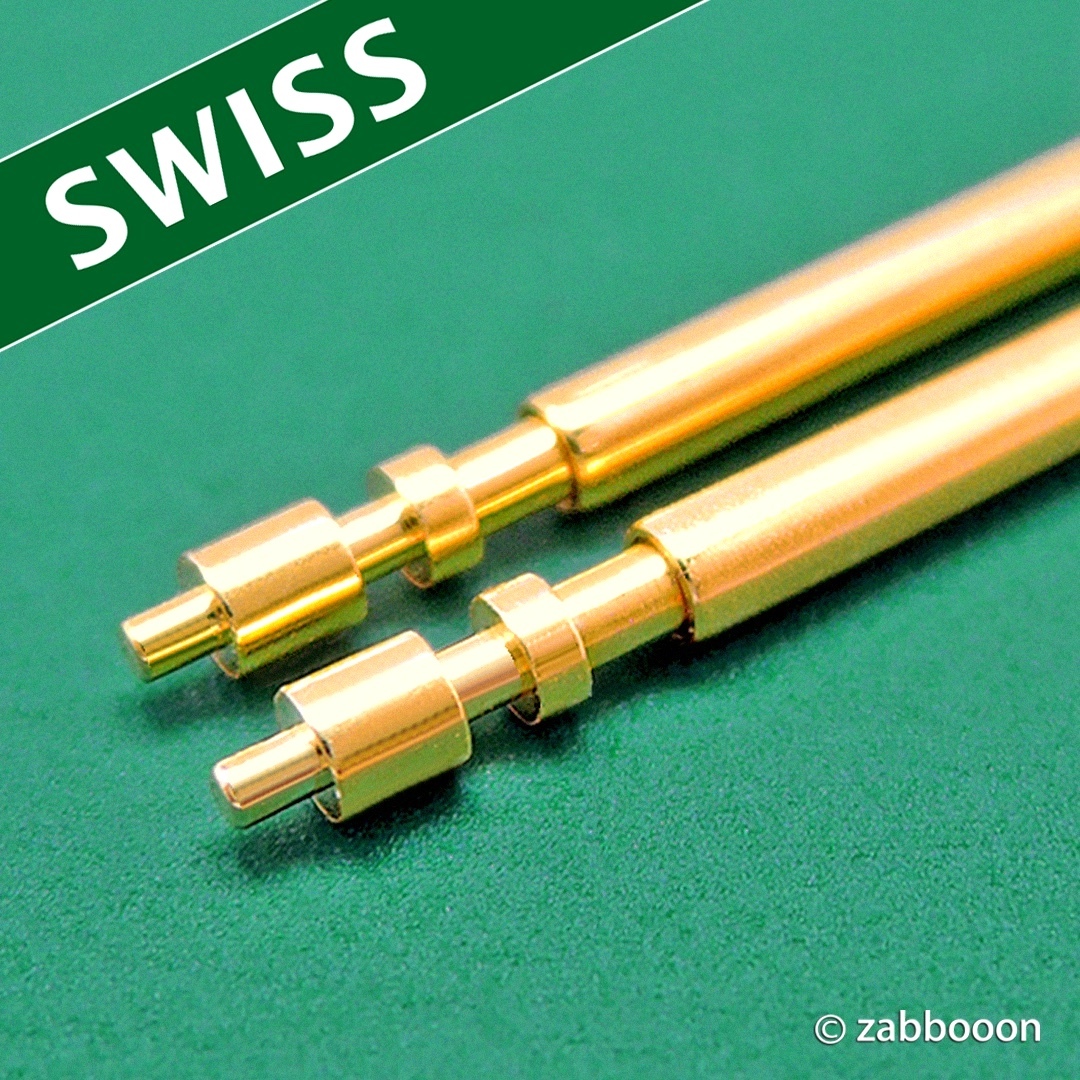 バネ棒 ゴールド 20mm Gilt 金メッキ 仕上げ【高品質 スイス製 ダブルフリンジ】2本1セット金無垢 18Kケースへ