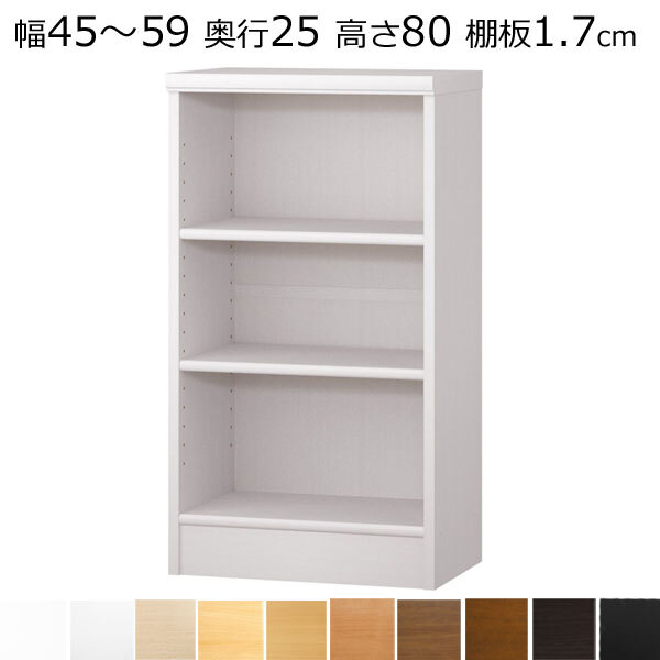 本棚・書棚 オーダーメイド 幅45~59 奥行き25(A4短辺サイズ) 高さ80cm( 棚板1.7cm厚標準)