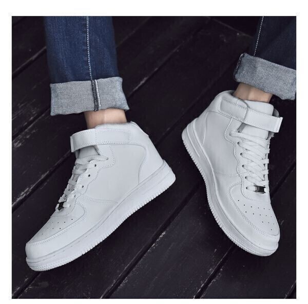 靴 s106 【26cm 白】 ハイカット スニーカー メンズ マジックテープ 厚底 シューズ バッシュ PUレザー ホワイト 白スニーカー 通学