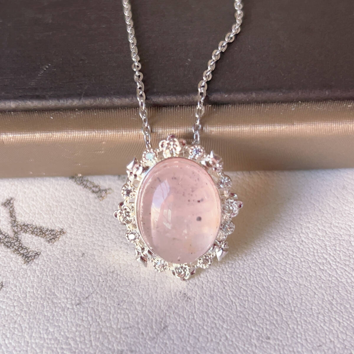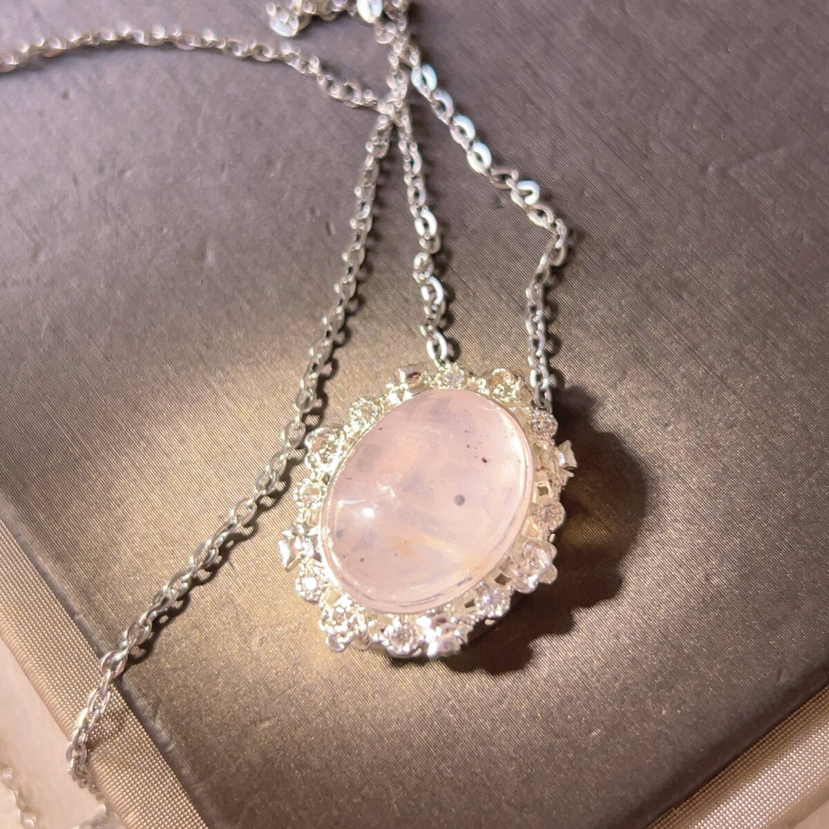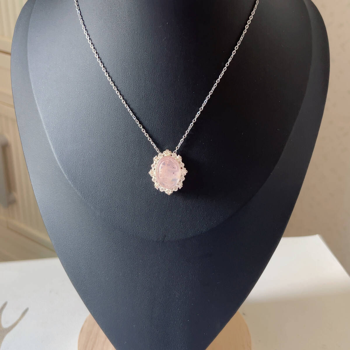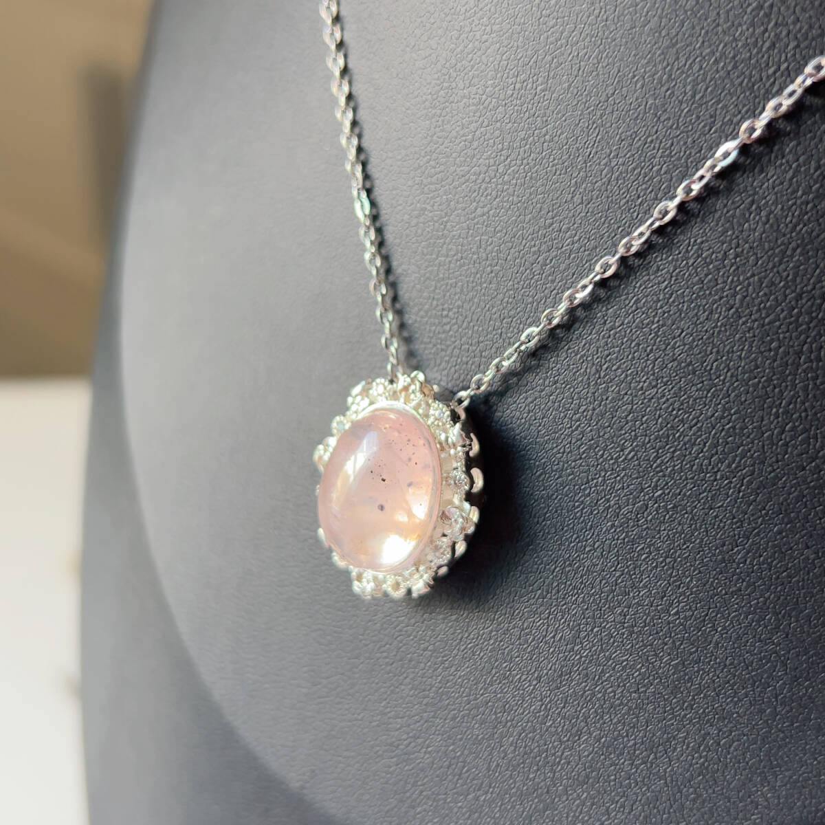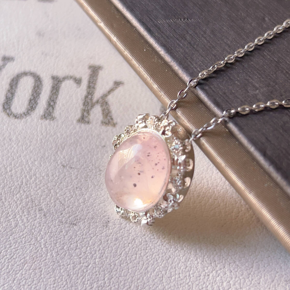 訳あり◇ローズクォーツ(紅水晶)◇黒雲母入り◇ネックレス◇ペンダント◇パワーストーン◇天然石◇巾着袋付き◇プレゼントにも038P7102