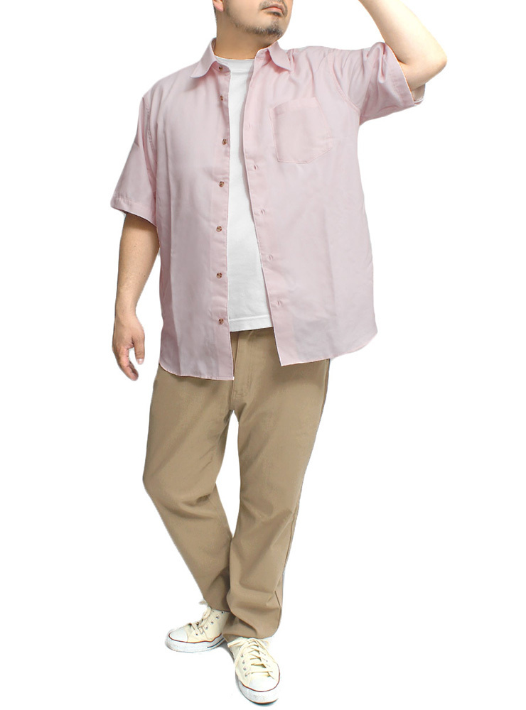 | 商品名 | 【新品】 3L ピンク 半袖シャツ メンズ 大きいサイズ パナマ織り 涼しい ゆったり 無地 カプリシャツ |