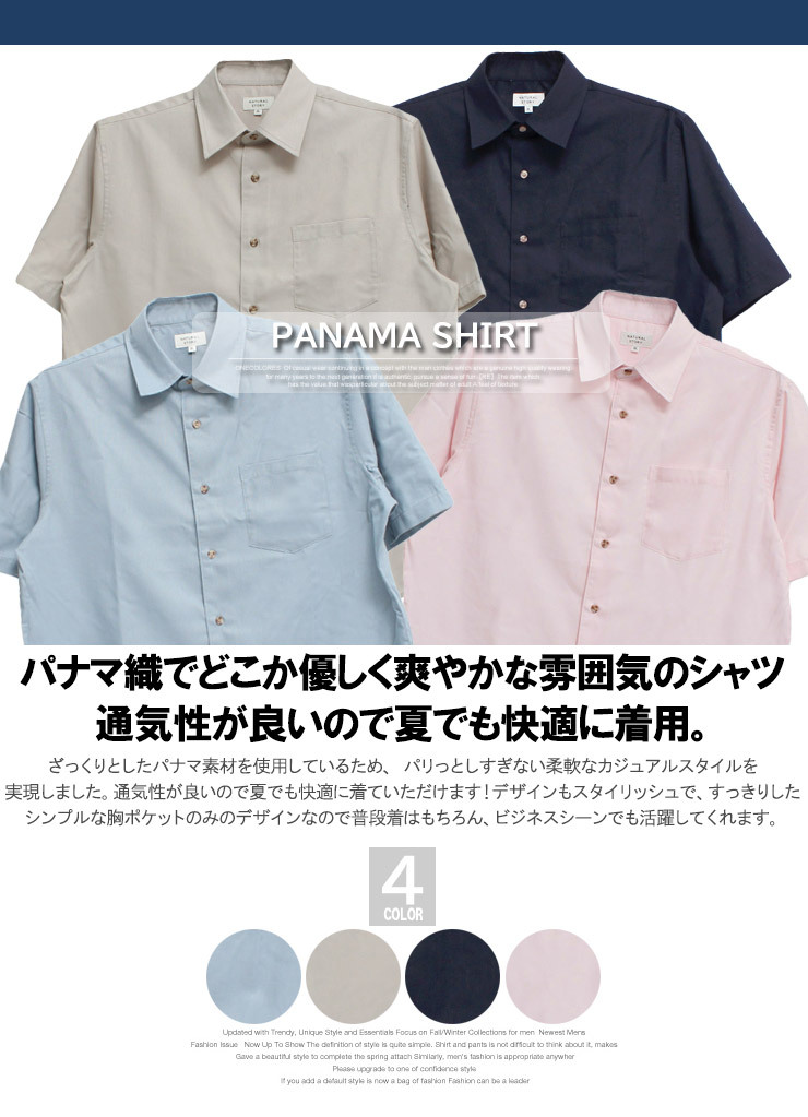 | 商品説明 | パナマ織でどこか優しく爽やかな雰囲気の半袖シャツ。 |