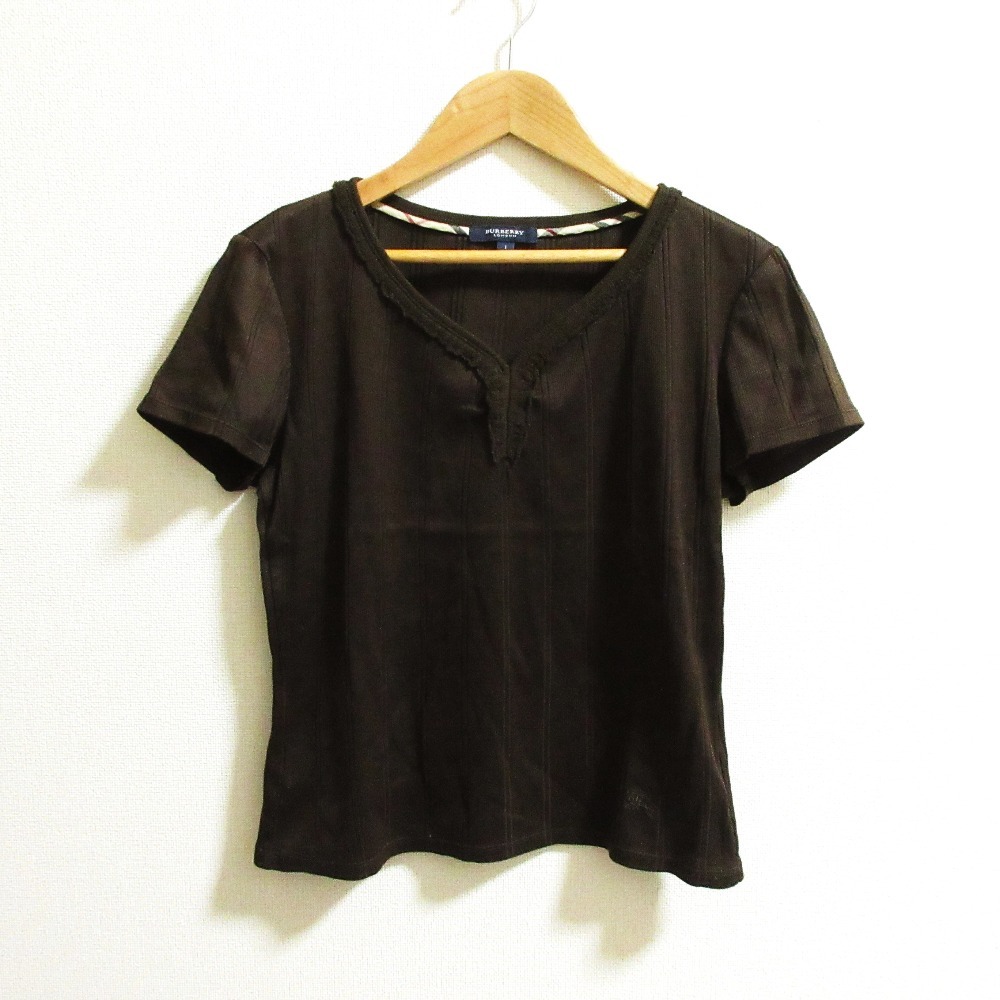 美品 BURBERRY LONDON バーバリーロンドン コットン リブカットソー サイズ1 ブラウン