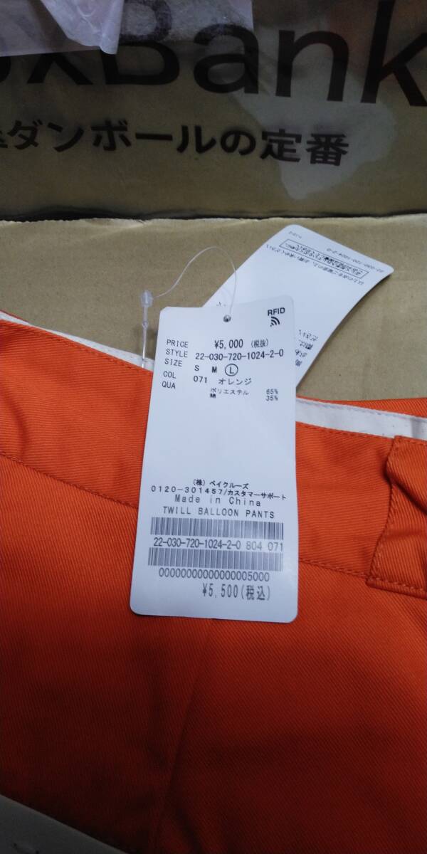 | 未使用自宅保管品B.C.STOCK TWILL BALLOON PANTS22030720102420 カラーオレンジ サイズL |