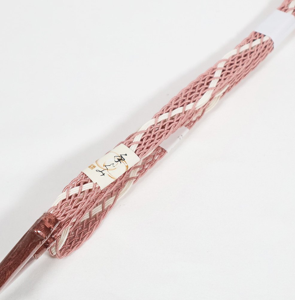帯締め | 夏用 手組紐 帯締め 新品 羅 濃ピンク 白 よろけ縞 |