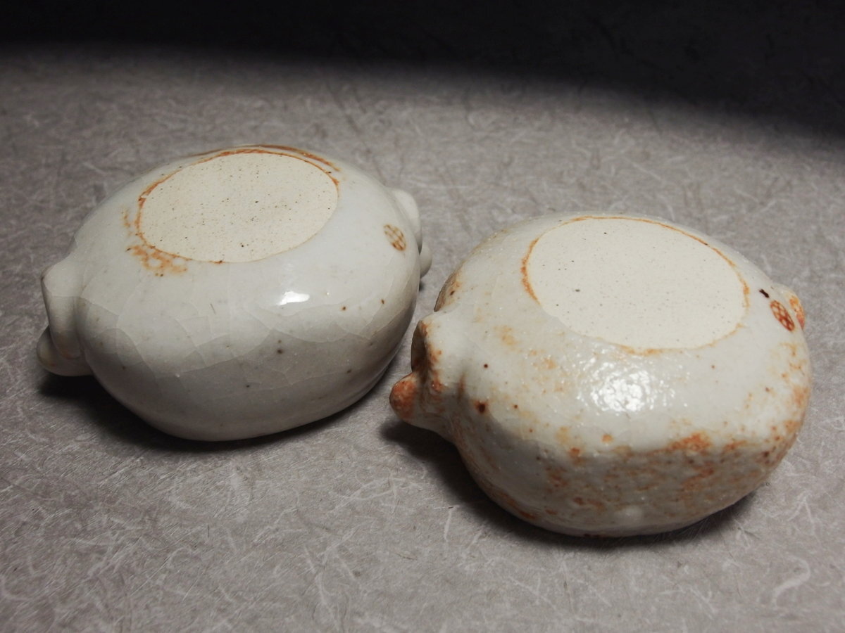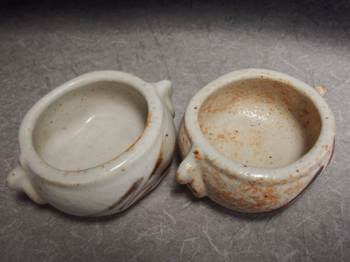 【 つゆくさ 志野 花器 2個セット 千趣会謹製 円形ミニ .剣山 2個付き剣山付き 】です