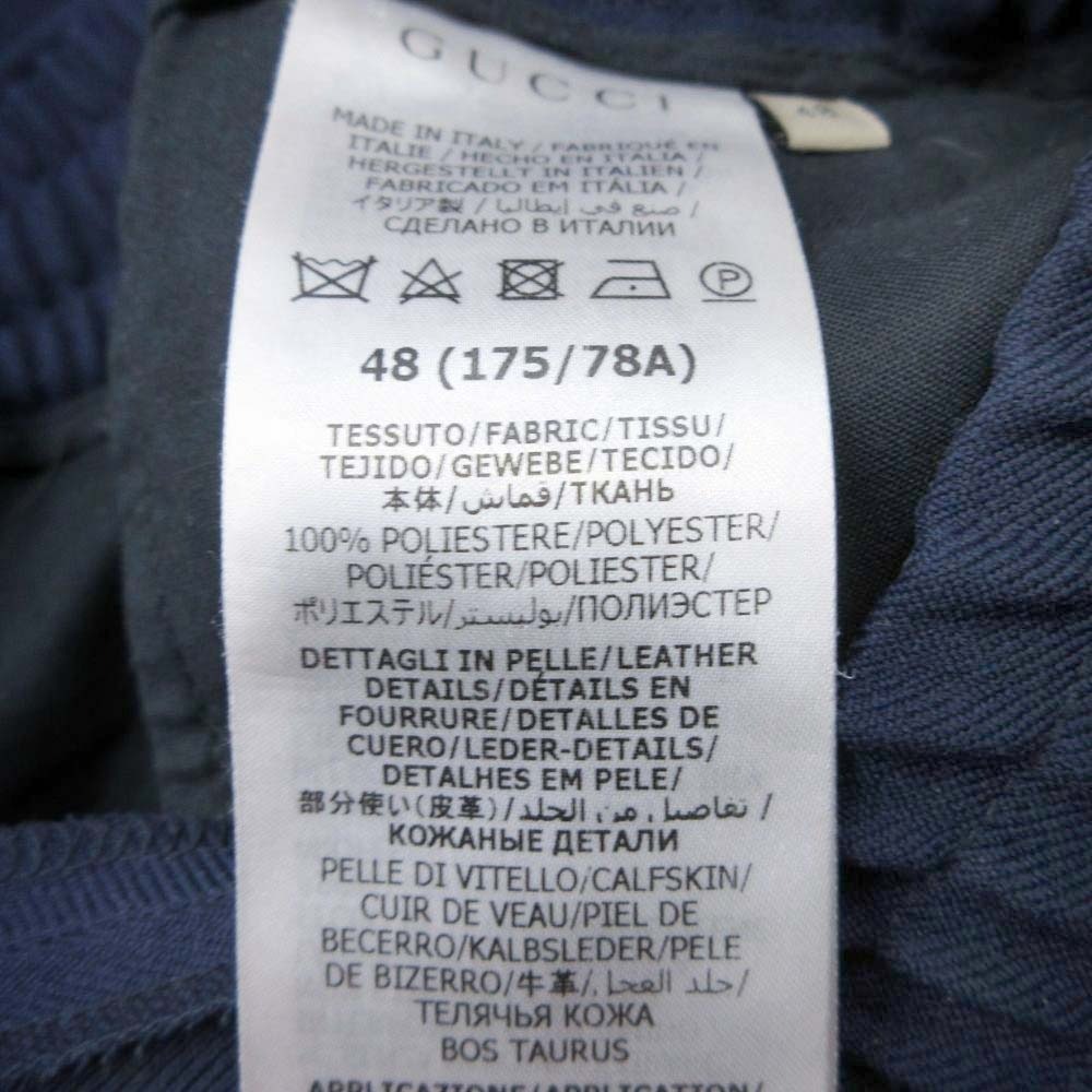 良品 GUCCI グッチ インターロッキングG トラックパンツ ジャージ ボトムス ロゴワッペン テーパード 48 紺 ネイビー