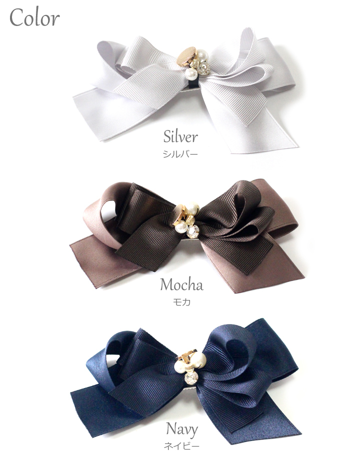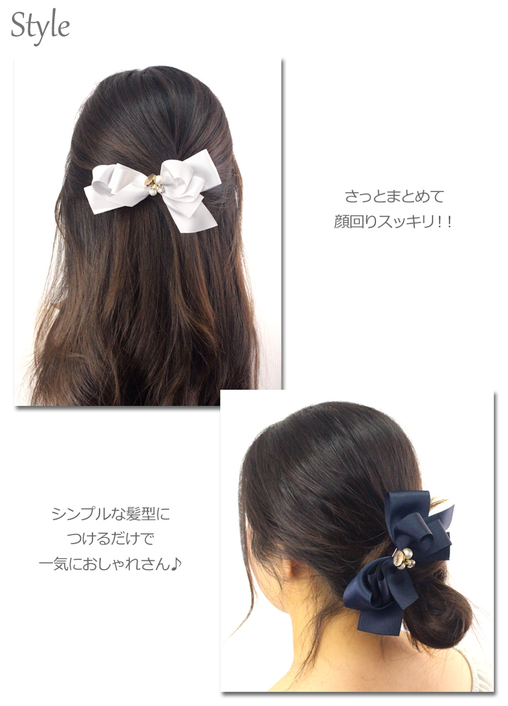 商品説明 | ボリュームのある3重リボンヘアクリップ リボンの中心のパール&ラインストーンが華やかさをプラス☆ ハーフアップやポニーにつけるだけでもエレガントスタイルに! アレンジヘアやお団子ヘアのポイントアクセにもお勧めです♪ |