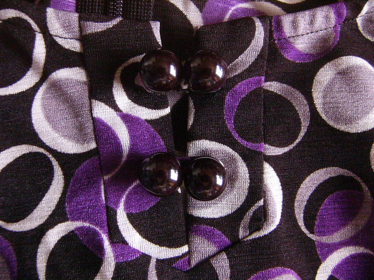 黒地に、グレー濃淡とむらさきの〇プリントです。