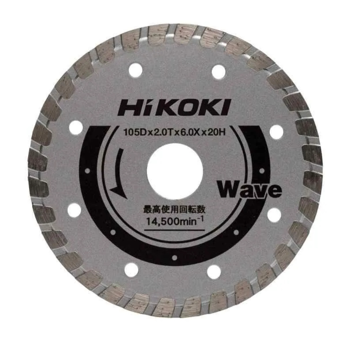 HiKOKI製の105mmダイヤモンドカッター、最大回転数14,500min-1で高効率な切断が可能。