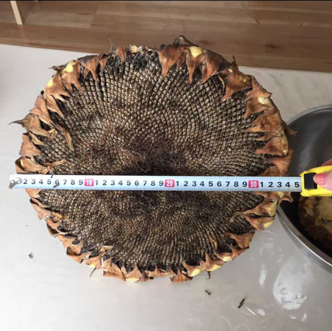普段のひまわり1.5m-2.5mもう十分の高さだと思いますが、うちは庭に育てて今年3m以上成長して来ました。花の直径も30cm超えました。本当に超巨大で優秀な品種だと思います。しかも、全体場所はあまり取らないです、背だけが高くて、びっしりと元気満々で、毎日どんどん成長してました。庭に一本立つとなんかとても格好いいと感じました。写真2枚目は一番背が伸びた時撮った写真です、当時3m以上ございます。そこから種の作りが集中で始まったようです。種まきから種の収穫まで、毎日観察して、やはり色々楽しいです。興味がある方、ぜひ来年お庭に育てて見ませんか?(o^^o)
