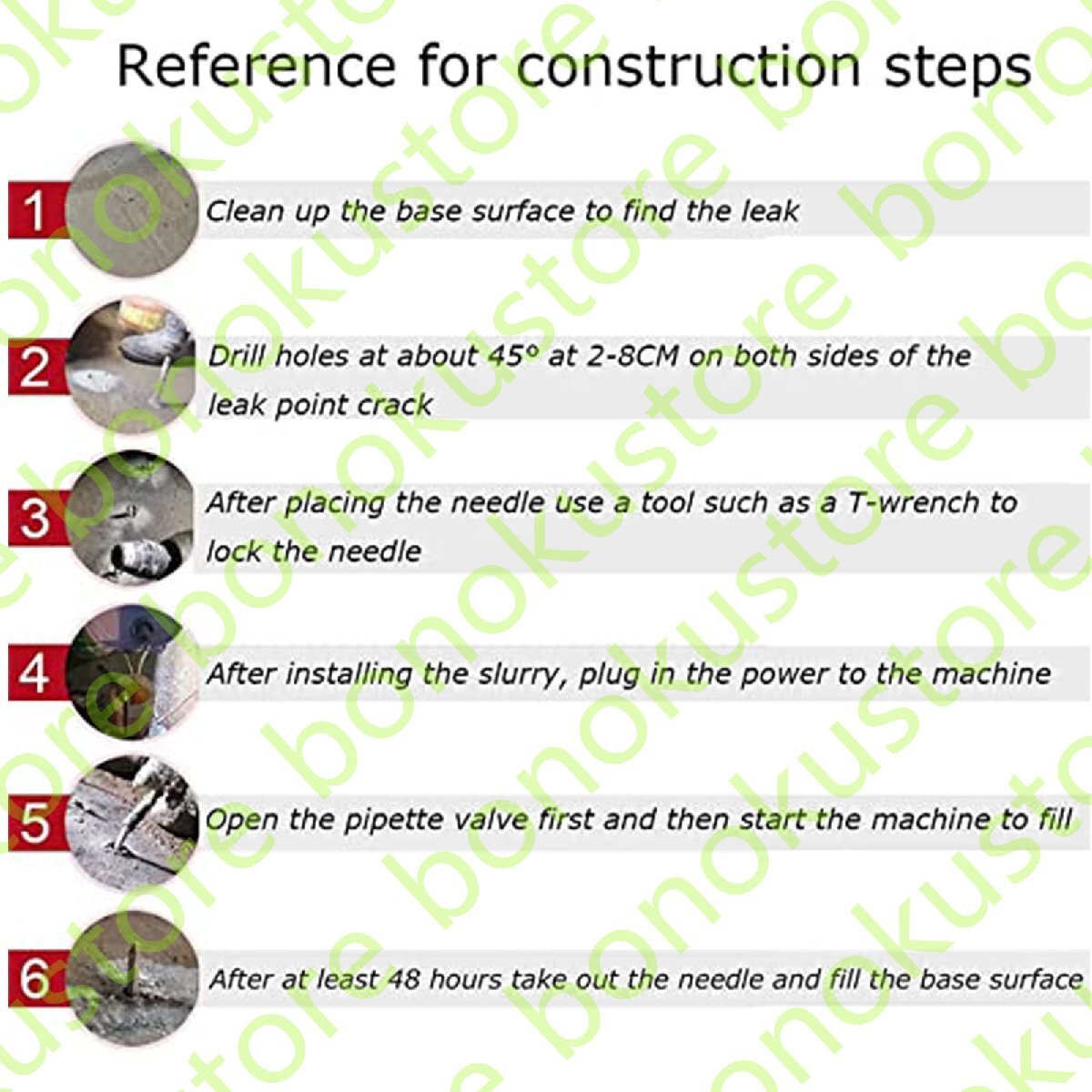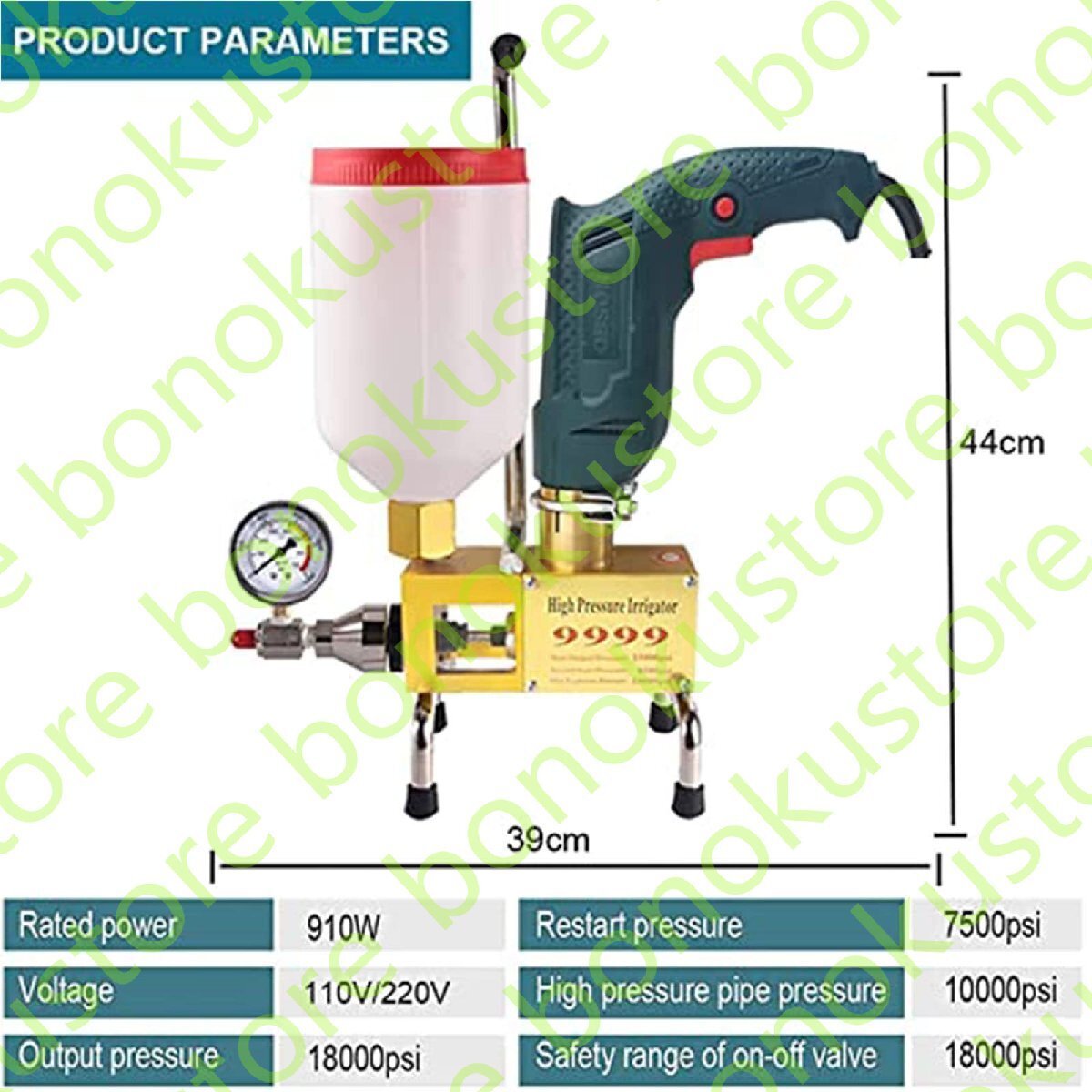 ?私の店「CHUNTIANMEI」へようこそ?高圧ジェットポンプは、機械的高圧を使用して化学噴射材料をコンクリートの亀裂に注入するため、スラリーが急速に分散、乳化、膨張、凝固し、最終的に材料本体を満たし、コンクリートの亀裂をブロックし、漏れの問題を解決します。特徴:1.安全に十分注意して使用し、保護めがね(高電圧の危険があります)、軍手、保護服を着用してください。2.スラリーは、セメントモルタルなどの固体粒子を含まないものとします。3.ボタンをクリックしてマシンを起動またはシャットダウンしないでください。しばらく押し続ける必要があります。4. 圧力が 10000 PSI (700 kg/cm2) に達したら、グラウトを続けないでください。仕様:名前: グラウト機電源:110V/220V 50Hz電力: 910W高圧ホースの安全範囲:最大出力圧力: 15000PSI切り替えバルブの安全範囲: 再始動圧力: 速度: 0-2800r/分流量: 0.74L/分製品付属品:1×フロアグラウターキット予防:グラウト機は水でテストできません!ご家庭にあるモーターオイルや植物油を使ってマシンをテストしてください!アフターサービス:ご不明な点がございましたら、時間内にご連絡ください。24時間以内に最高のサービスを提供いたします。当店でお買い物をお楽しみください。当店は質の高いサービスを提供します。