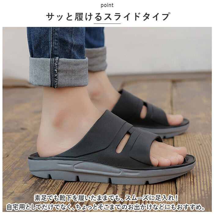 | 商品説明 | ・・デイリー使いからレジャーまで、幅広く活躍!軽やかな履き心地のサンダルが新登場。 ・【サッと履けるスライドタイプ】 ・素足でも靴下を履いたままでも、スムーズに足入れ!自宅用としてだけでなく、ちょっとそこまでのお出かけなどにもおすすめ。 ・【足にかかる負担を軽減】 ・衝撃を吸収し、クッション性もあるEVA素材を採用!足底圧を分散できて、素足での移動も疲れにくい◎ ・【トゥスプリング設計】 ・つま先が上を向いたつくりで、つまづきにくい!蹴り上げやすく、足元軽やかで歩きやすさが向上☆ ・【雨の日も夏のレジャーでも】 ・水に強く、雨の日はもちろん、プールや海水浴などのレジャーシーンではビーチサンダル代わりに!汚れが気になったら水洗いできて、お手入れもラクラク。 ・【滑りにくい凹凸ソール】 ・凹凸のあるアウトソールで、安定した歩行をサポート。 ・【カジュアルコーデに馴染むデザイン】 ・シンプルな無地デザインながら、ソールの色味を変えたバイカラー仕様。程よくアクセントをプラス。 ・【持ち運びにも便利】 ・とっても軽いので、旅行などへの持ち運びもラクラク。オフィスサンダルとしても! ・【お揃いで履けるユニセックス仕様】 ・うれしい7サイズのラインナップ。家族やご夫婦、カップルでペア使いもOK。 |