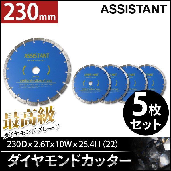 【5枚セット】ASISSTANT■9インチ ダイヤモンドカッター/コンクリートカッター 230mm 乾式/湿式 調整リング付き【応援セール】