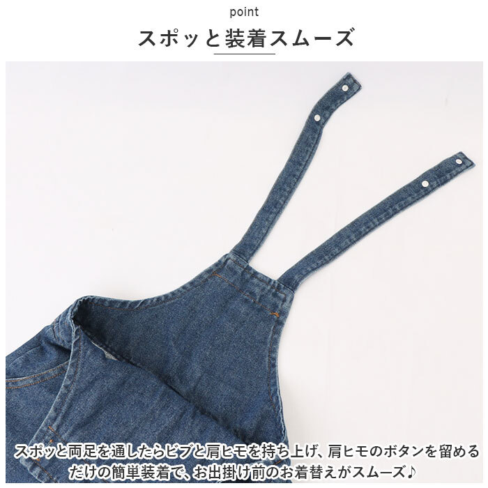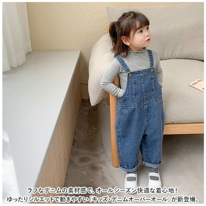 商品説明 | ・・ラフなデニムの素材感で、オールシーズン快適な着心地!ゆったりシルエットで動きやすい「キッズ・デニムオーバーオール」が新登場。 ・【スポッと装着スムーズ】 ・スポッと両足を通したらビブと肩ヒモを持ち上げ、肩ヒモのボタンを留めるだけの簡単装着で、お出掛け前のお着替えがスムーズ♪ ・【ボタンで2段階調節】 ・肩ヒモはビブのボタンホールで2段階に調整可能。キッズの身体の成長に合わせて、長く使えるのが嬉しいポイント。 ・【キッズに優しいゆったりサイズ】 ・くったりと柔らかなデニム素材と、締め付け感のないゆったりシルエットで、動きやすさも抜群。活発なキッズの身体に優しいつくり。 ・【ロールアップが可愛い】 ・ズボンの裾をロールアップすればサイズ調節ができるので、少し大きめサイズでも安心。男の子も女の子も着こなし自在。 ・【便利なフロントポケット】 ・フロントのビブには、両サイドから指が入る小さなカンガルーポケット付き。ミニハンカチやキャンディもちょこんと取り出しやすくて便利。 ・【ご家庭で簡単お洗濯】 ・ナチュラルな綿混素材だから、公園でのお砂場遊びや泥んこ遊びで汚れてしまっても、ざぶざぶと手軽にお洗濯が可能。 ・【これ1枚で可愛くキマる♪】 ・シンプルなトップスと合わせるだけで、すぐにお出掛けスタイルが完成!お洒落に余念のないボーイズ&ガールズも大満足のユニセックスデザイン。 |