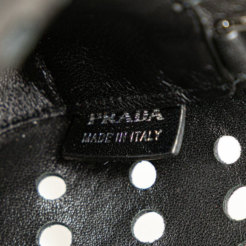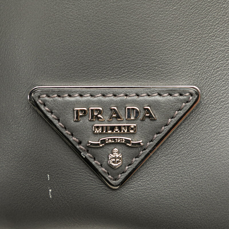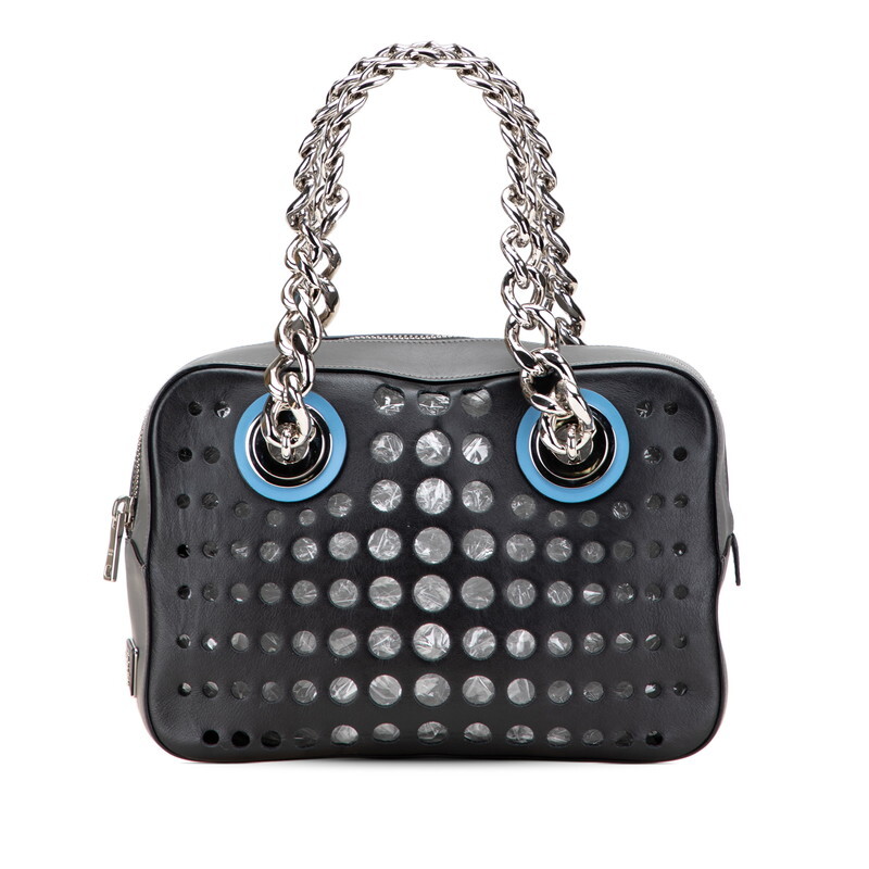 プラダ 三角ロゴプレート パンチング チェーン トートバッグ ハンドバッグ 1BB017 ブラック グレー レザー レディース PRADA 【中古】