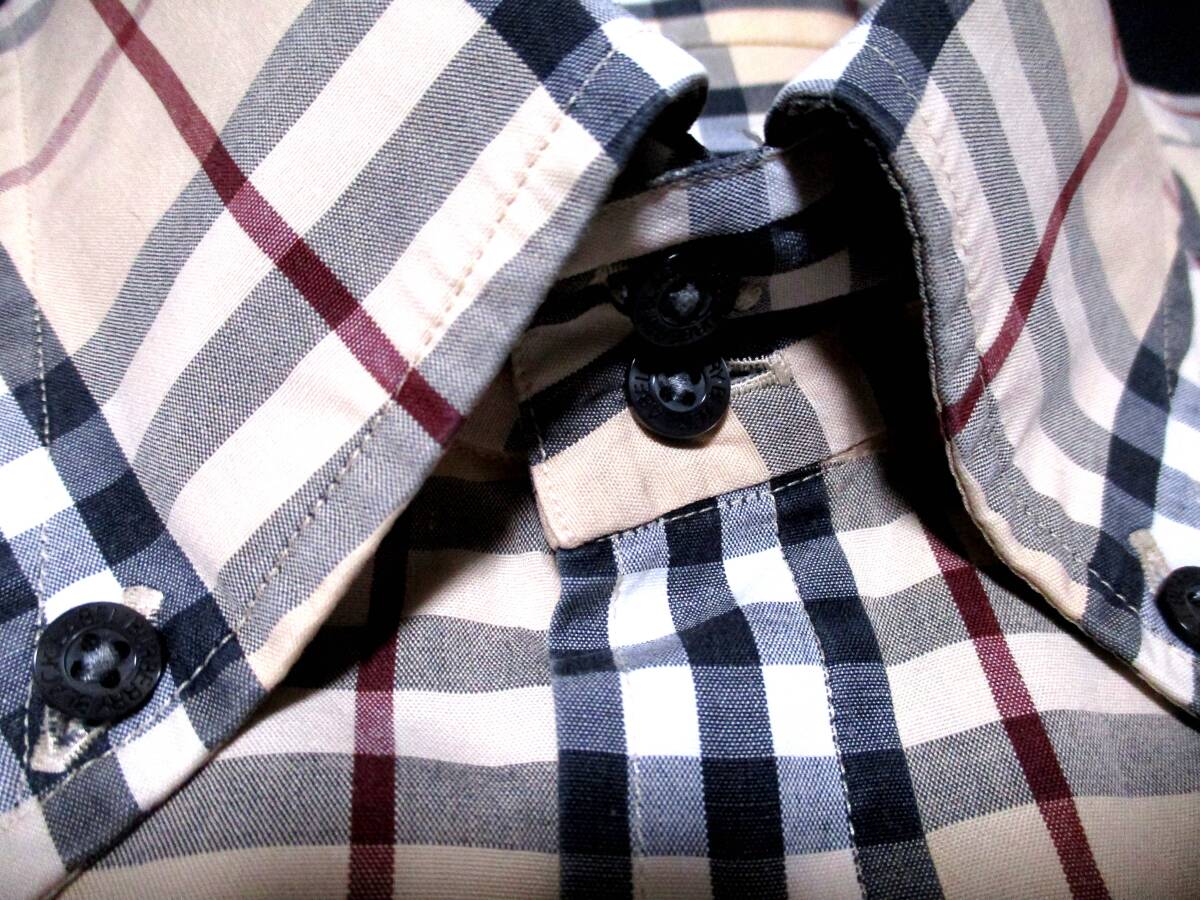 三陽商会株式会社はバーバリーとのライセンス契約終了に伴い、2015年6月末でバーバリー商品の生産・販売を終了しました。 今後、バーバリーブラックレーベル商品の購入は困難になると予想されますので、ぜひこの機会に! フルノバチェック半袖BDシャツ。 Mサイズ(2)になりますが大きめになりますので、通常Lサイズ(3)の方もぜひご検討下さい★(必ず記載の実寸をご確認ください) バーバリー定番のベージュカラーに言わずと知れたインパクト抜群の高感度ノバチェック柄がデザインされ、ラグジュアリーな大人コーデを演出してくれます☆ 左胸エンジホース刺繍、左袖ロゴラベル、ボタンロゴ刻印でブランドアピールもバッチリ。 日本製の上質コットン生地で着心地も◎ 2ツボタンの高い台襟もお洒落★ インパクト抜群のハイグレード大人夏シャツとして、幅広いシーンで活躍できます♪ カラー:ベージュ系 サイズ:M~L(2) 肩幅:約46cm身幅:約54cm着丈:約71cm袖丈:約24cm(多少の誤差はあります。ご了承下さい) 素材:綿100% 株式会社 三陽商会/日本製 多少使用感はありますが、古着としましては美品になり、これからもご活躍いただけると思います。 しかし、あくまで古着での出品になります。 神経質な方や古着を理解できない方は入札をご遠慮下さい。 | |||