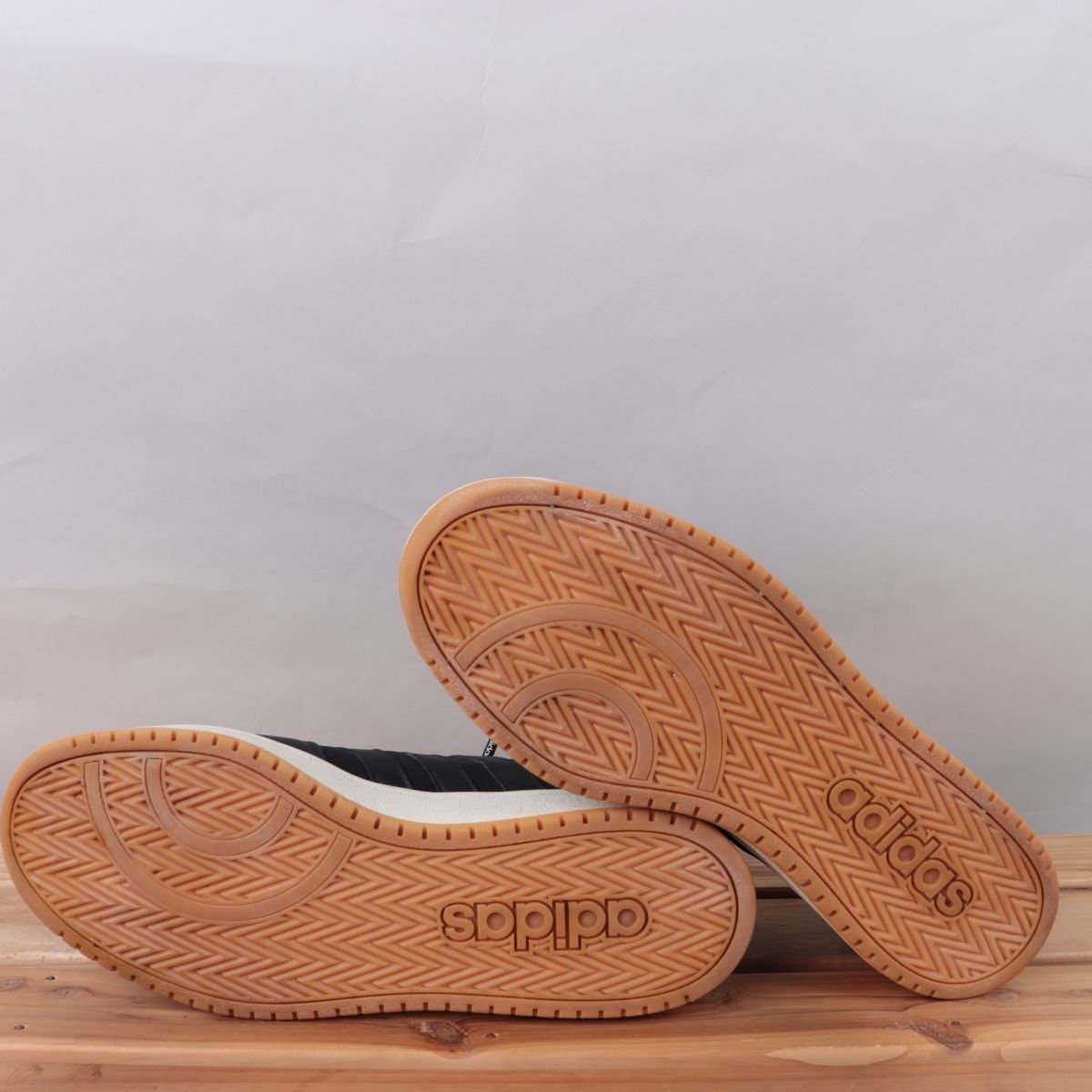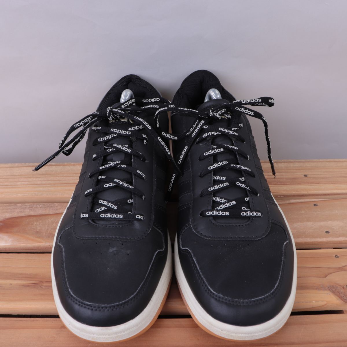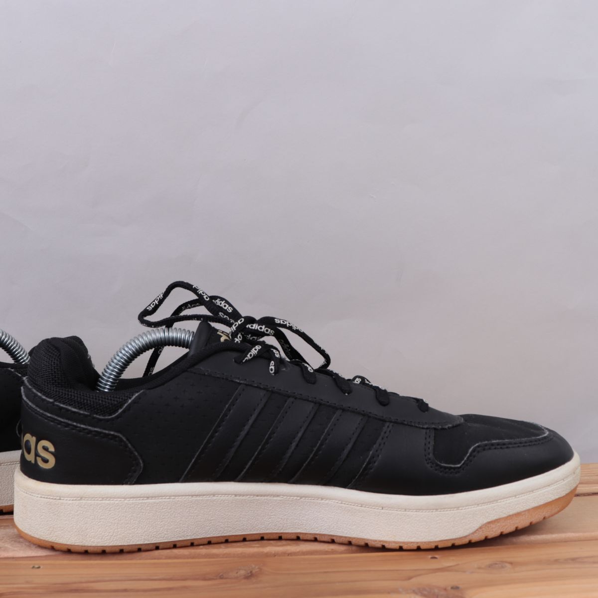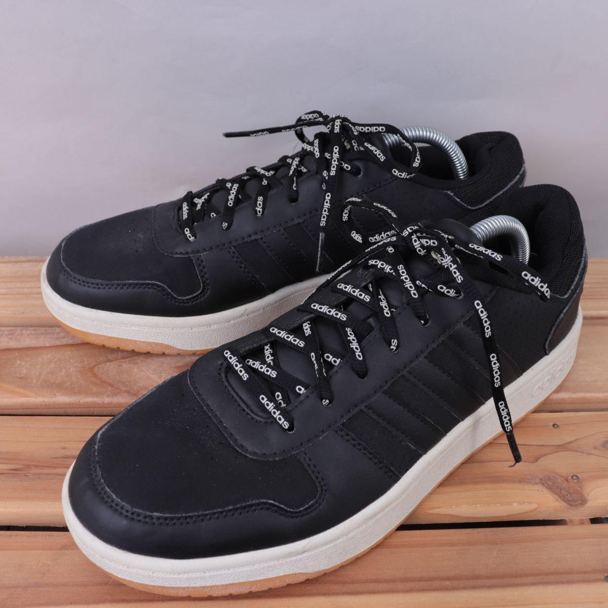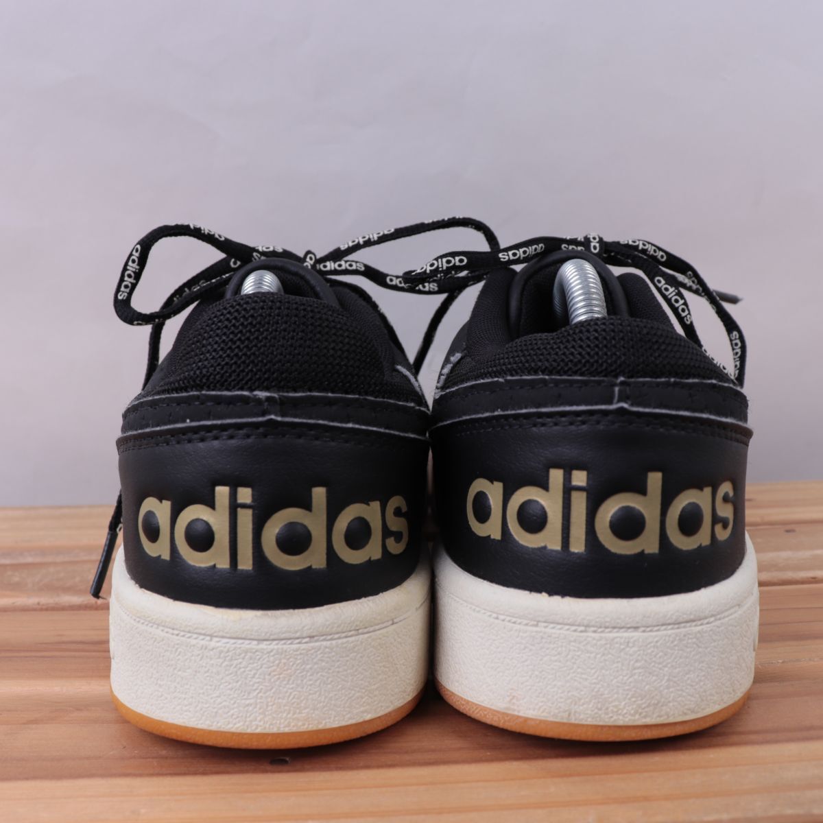 z617 アディダス アディフープス US9 1/2 27.5cm/黒 ブラック 白 ホワイト 金 adidas ADIHOOPS メンズ スニーカー 中古