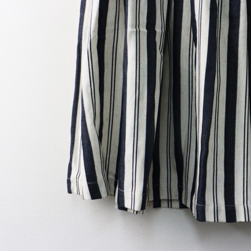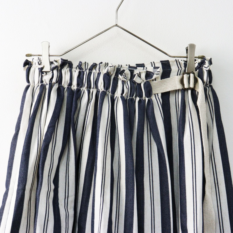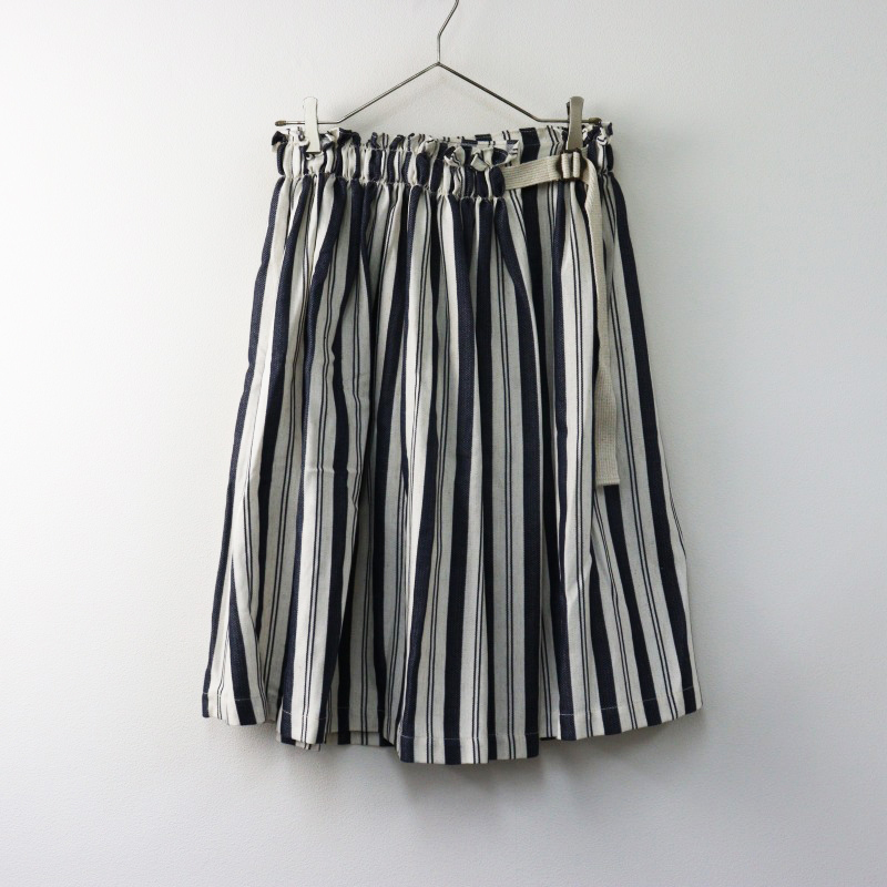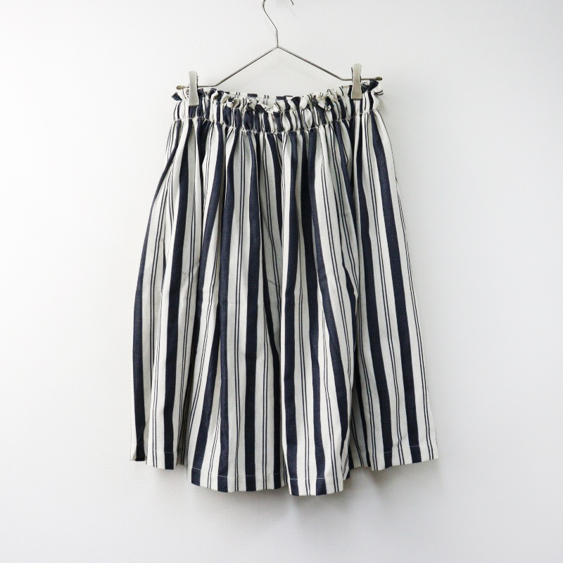 美品 ロイスクレヨン Lois CRAYON ストライプギャザーフレアスカート M/オフX濃ネイビー/ボトムス【2400014528107】