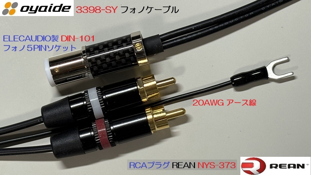 ★ケーブル オヤイデ電気の1芯シールド 3398-SY を採用。 オヤイデ電気オリジナルの精密導体“102 SSC”と“XLPE”絶縁による、耐熱・耐電圧に優れたシールド付きオーディオ機器用内部配線材。 34本構成のスパイラルシールドで素線間の隙間を排除し、優れたシールド効果を発揮。外シースにPVCを採用し、優れた柔軟性を確保。 ★フォノ5PINソケット ELECAUDIO製 DIN-101 高級トーンアームコネクター を採用 仕様 断熱材:PTFE コンタクト:金メッキ24K 最大ケーブル直径:8.5mm ボディ:カーボンクラッドメッキ 重さ:35g 全長:40.5mm 総直径:14mm 差込直径:12mm ★プラグ リアンNYS-373 に変更。 接触部は金メッキで音質・耐久性・デザイン性に優れた高品質なプラグです。 ★ハンダ 音質的に認められているKester44を使用します。 | ||||