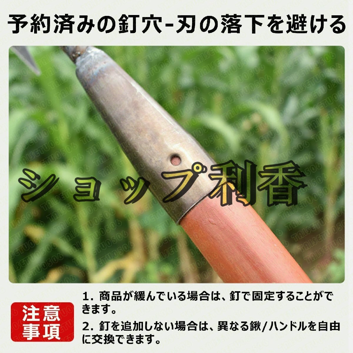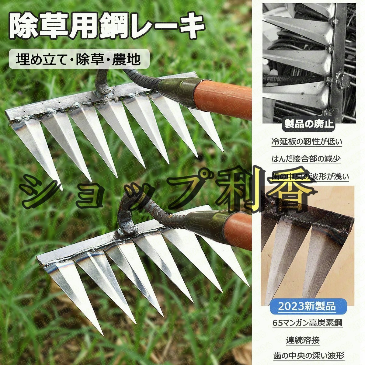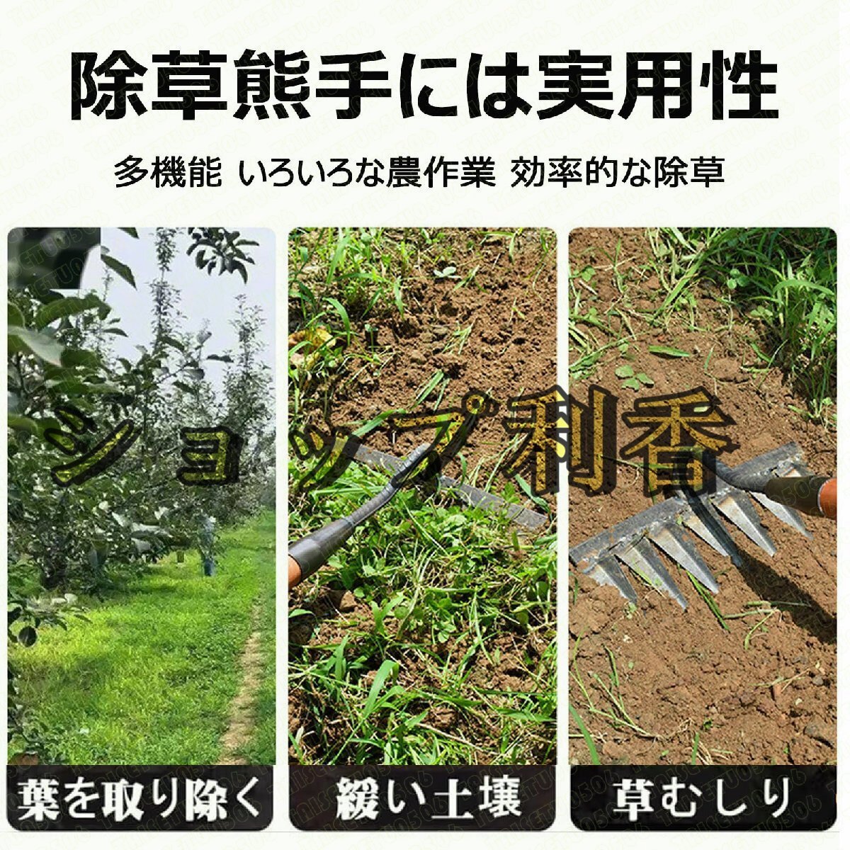 【多機能なガーデニングツール】除草耙は翻地、除草、松土、??叶など、さまざまなガーデニング作業に使用することができます。一つの工具で複数の作業を効率的に行えるため、時間と労力の節約につながります。【優れた除草能力】 鋭利で丈夫な鋤齒が雑草をしっかりと摘み取ります。根を取り去ることで雑草の再生を防ぎ、庭や畑を美しく保つことができます。【土壌を改善する】除草耙は松土作業にも適しています。地面をほぐし、通気性と水の浸透性を高めることで植物の根の成長を促進します。健康な土壌を作り出し、植物の生育状態を向上させます。【果樹園での葉集め】除草耙は??叶の作業にも効果的です。鋤齒を使って落ち葉を集めるだけでなく、地面をほぐすことで果樹の根の成長をサポートします。■-----------------------■【軽快な農作業】除草耙は軽量で取り回しやすく、農作業を楽にします。長時間の作業でも手や腕への負担を軽減し、効率的な作業が可能です。【鋤齒が鋭い】 当製品の芯部分は鋼製で、鋤齒は鋭利に削られています。これにより、雑草や根をすばやくしっかりと掻き出すことができます。【耐久性抜群】 製品は高品質な素材で作られており、耐久性抜群です。頑丈な作りでありながら、長期間にわたって使用することができます。【土をほぐす強い味方】 除草耙は一方向にすばやく動かすことで地面をほぐすことができます。土壌中の栄養分を均等に広げ、植物の成長を促進します。