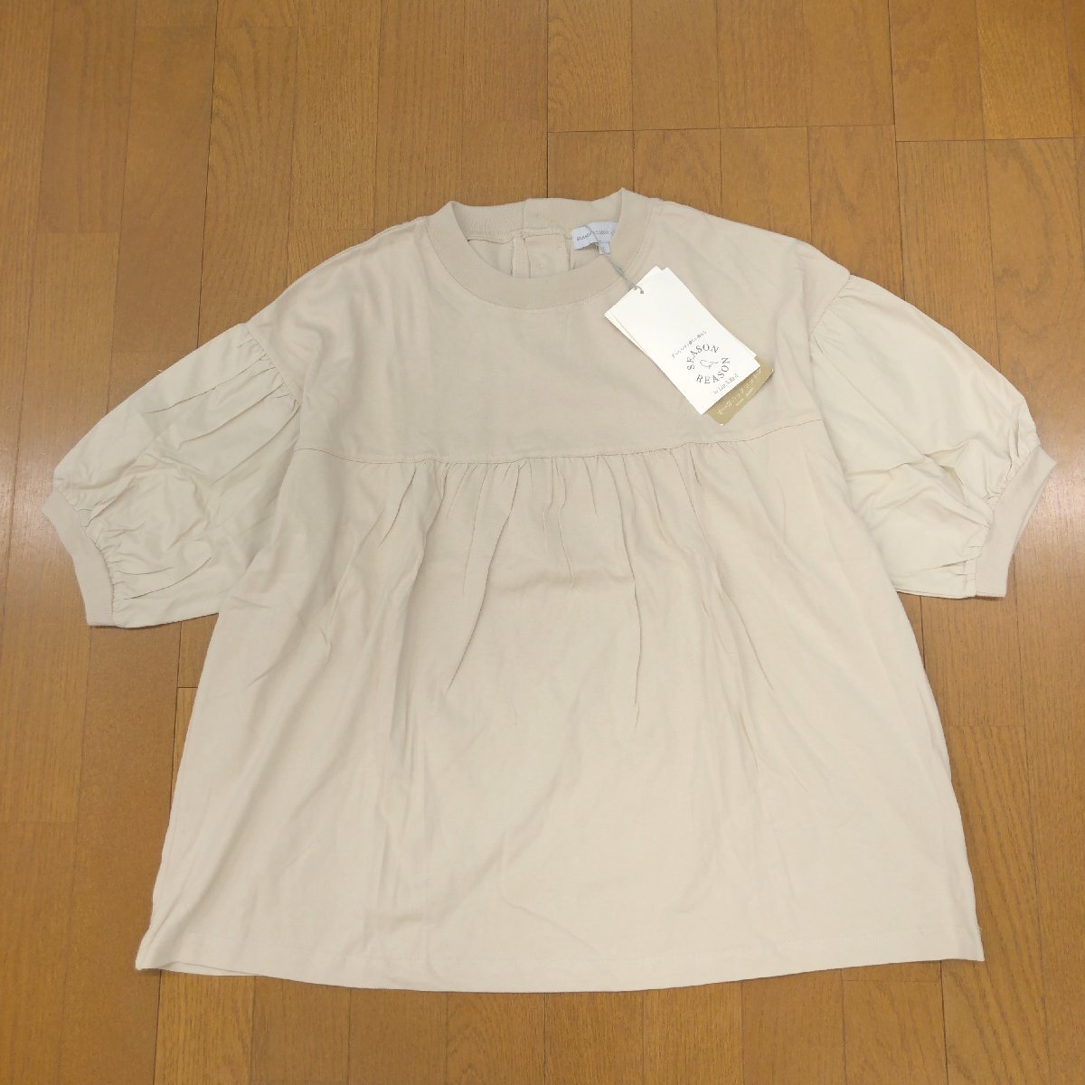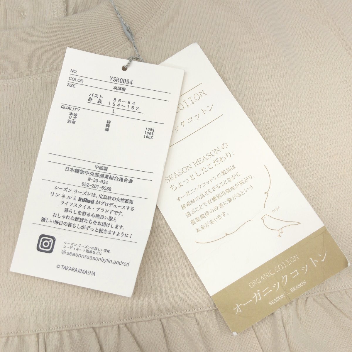 新品 SEASON REASON by Lin.&Red シーズンリーズン オーガニックコットン パフスリーブ ゆったり カットソー L Tシャツ 五分袖 未使用