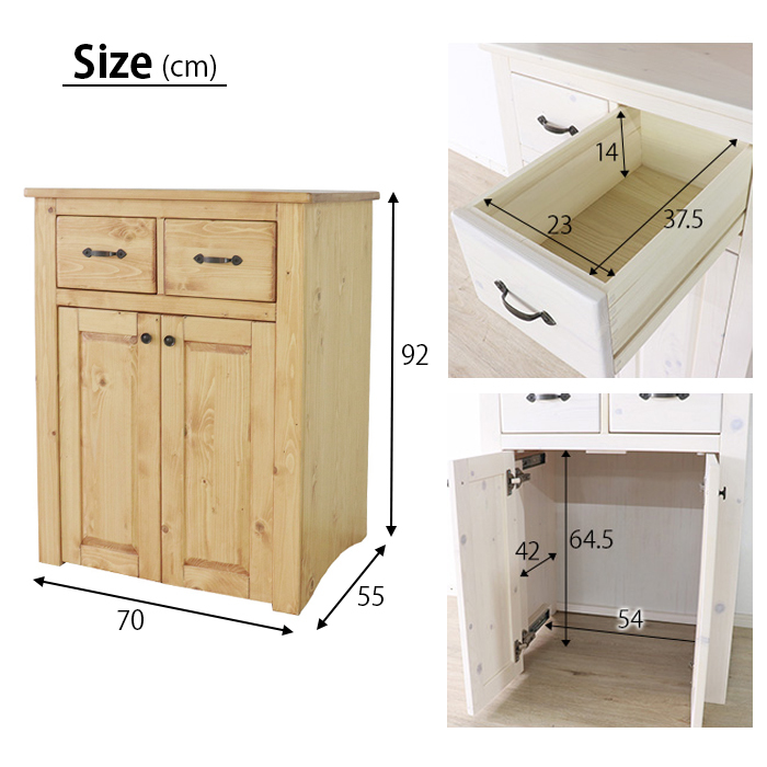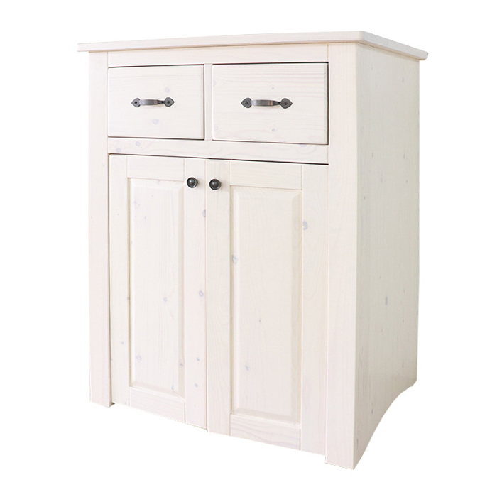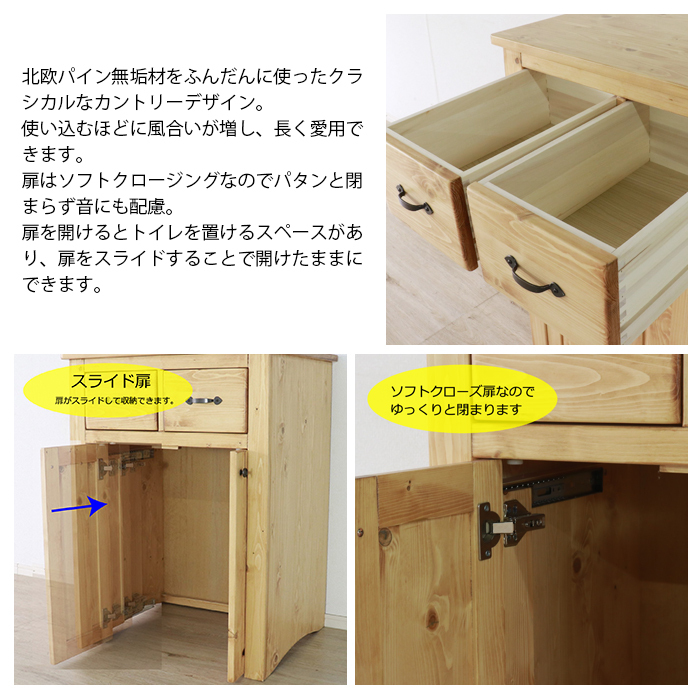 北欧パイン無垢材を豊富に使用し、本格的なカントリースタイルで、重厚感と存在感のあるデザインのペットトイレ収納キャビネット。