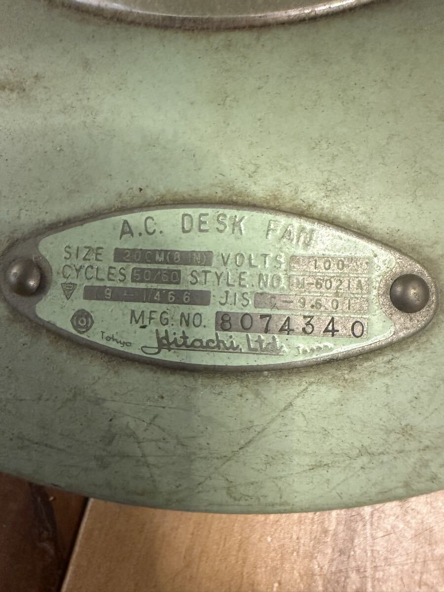 【レア動作品】昭和レトロ 日立 ポルカB型(グリーン) 高級扇風機 20Cm M-6021A 60年代 ビンテージ アンティーク 当時物