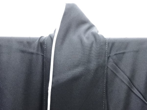 衿は広衿です。比翼は化繊で身頃より少し出ています。共八掛で柄入りです。右後身頃裾寄りに薄点くすみ、ピン穴が有ります。薄ヤケが有ります。状態は良いです。着用可能です。採寸・検品:北河、川本 撮影:福永