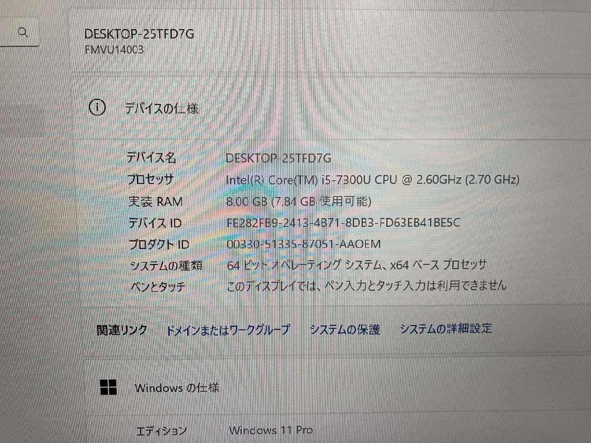 | CPU | Intel(R) Core(TM) i5-7300U CPU @ 2.60GHz (2.70 GHz) |