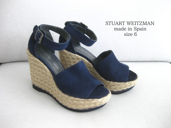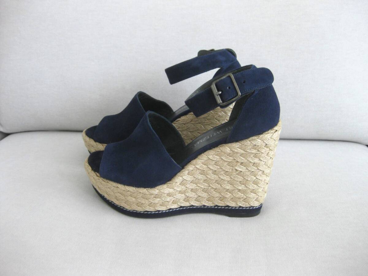 ☆美品☆STUART WEITZMAN☆ヒールサンダル☆スエード☆6(23cm)☆NAVY☆ウエッジエスパドリーユ☆厚底☆スチュアートワイツマン☆即決☆
